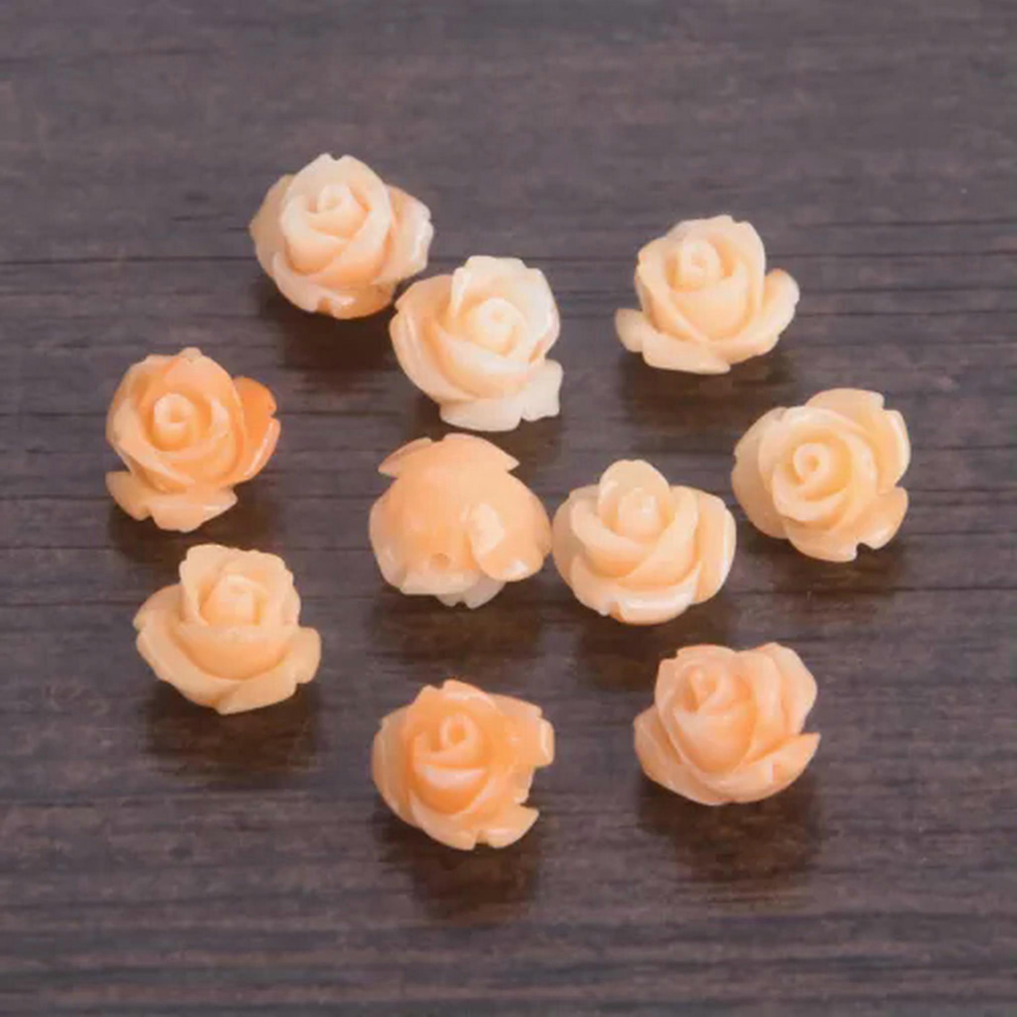 10pcs Rose Flower 6mm 8mm 10mm Resin Artificial Coral Loose Beads DIY Jewelry-Yellowish Orange-6mm