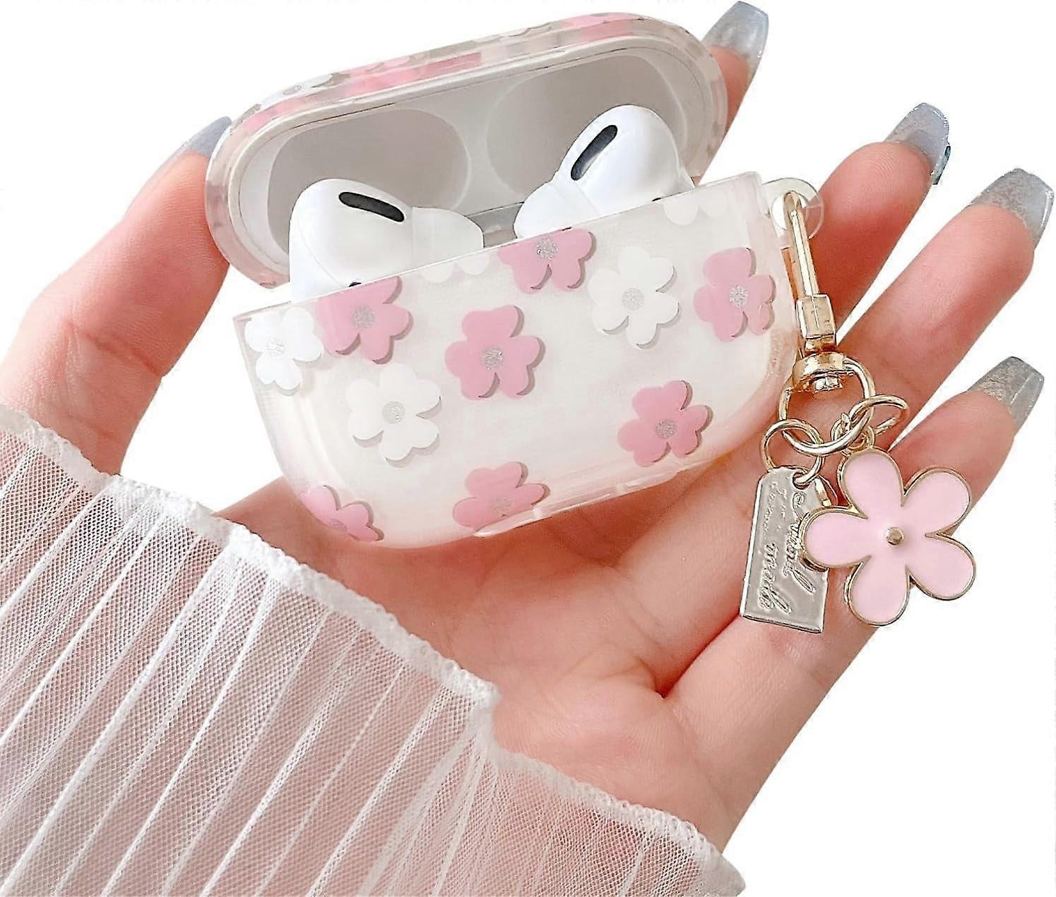 Compatible with AirPods 1/2: Clear, soft TPU shockproof case with cute floral pattern & keychain – Blue