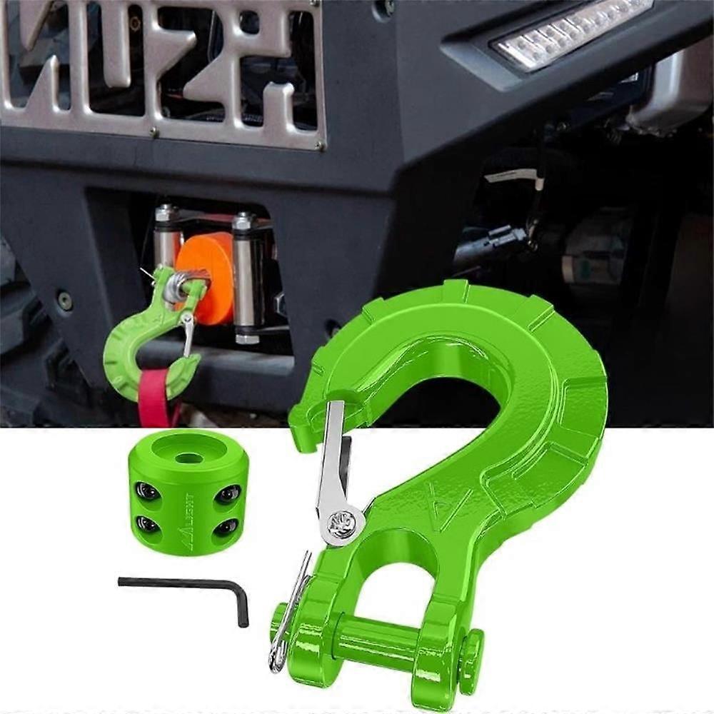 Forged Steel Winch Hook 3/8" Grade 70 Safety Latch Winch Cable Hook Stopper & Clevis Slip Hook Sets, Included Allen Wrench,Max 35,000 lbs, Green