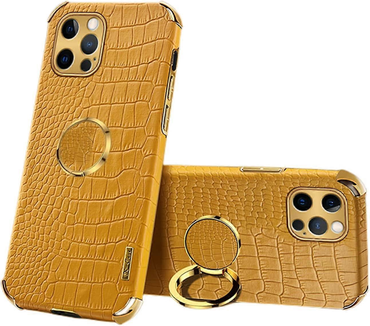 Luxury Soft Leather Phone Case with Rotatable Finger Ring for iPhone 14/13/12/11 Plus/Pro/Max/Mini – Yellow, 14 Pro Max Compatible