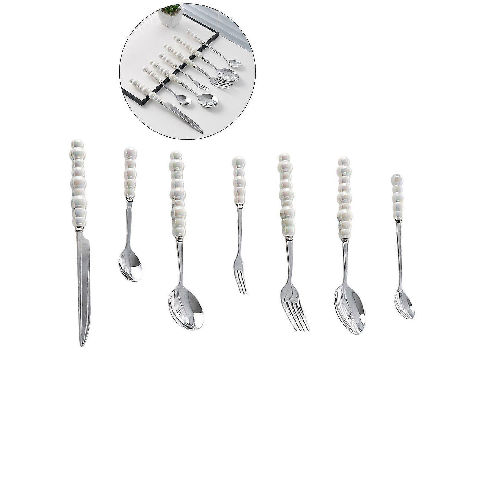 Stainless Steel Spoons, Stainless Steel Ceramic Handle Spoon, Dessert Spoon with Imitation Pearl Handle(White)