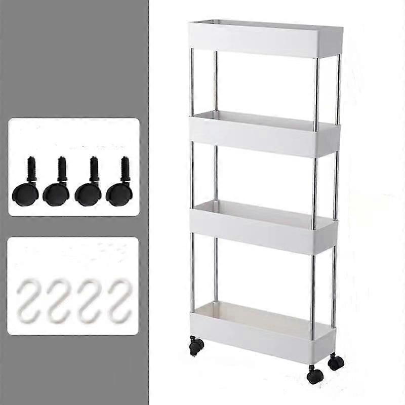 Slim Storage Cart 4 Tier White Mobile Shelving Unit for Bathroom & Office