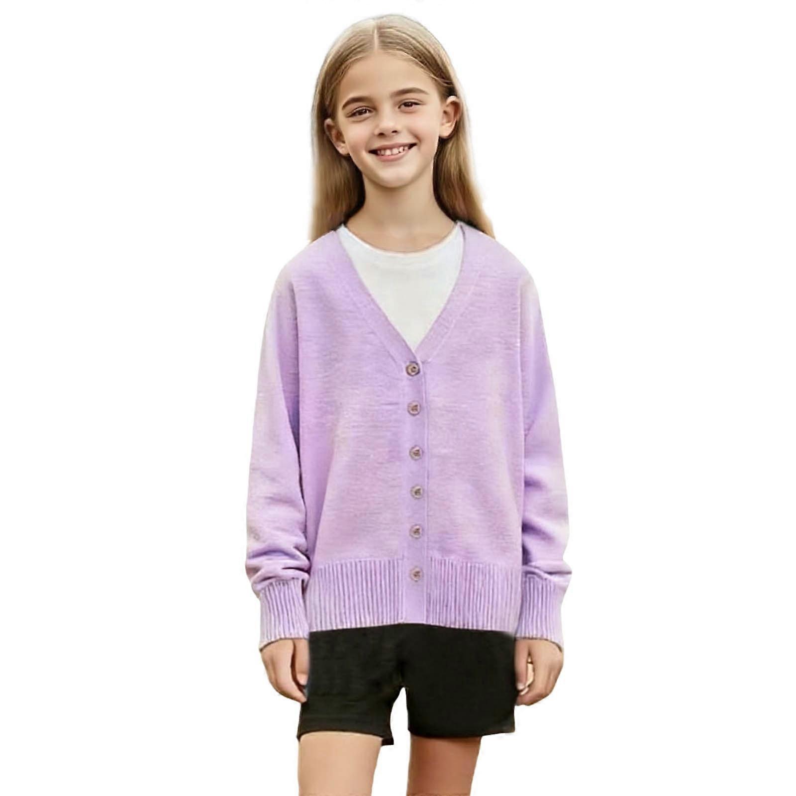 Purple Fleece-Lined Cable Knit Cardigan for Kids, V-Neck Warm Lounge Coatigan – Compatible with 9Y