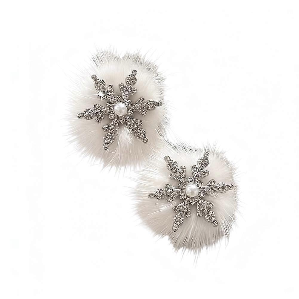 2 pcs klip rambut bulu salji berbentuk paruh itik untuk wanita, hiasan kepala putih yang manis untuk Krismas