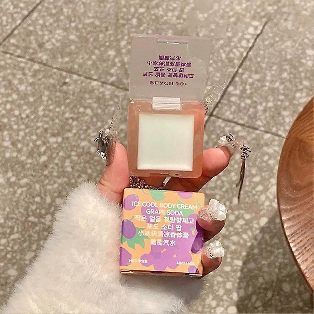 HOW TO USE: Gently rub a small amount of the solid balm onto your pulse points, such as wrists, behind the ears, or on the neck. Reapply as desired for a continued refreshing fragrance experience. SPECIFICATION: Name: Ice Cool Scented Solid Balm Net content: 4g / 0.14 OZ ADVANTAGES: 1. **Enchanting Grape Soda Aroma:** Immerse yourself in the delightful "Grape Soda" scent, a refreshing floral blend that captures the essence of a sweet, innocent first love. This unique fragrance harmoniously combines the crispness of bergamot with the delicate notes of jasmine, offering a gentle and subtly sweet aroma that is never overwhelming. 2. **Portability:** Designed with convenience in mind, this compact solid balm comes in a mini square case, perfectly sized to slip into your pocket, clutch, or travel bag. Enjoy instant fragrance touch-ups wherever your day takes you. 3. **Effortless Application & Sensory Pleasure:** Experience the ease of applying this smooth-textured balm directly to your skin. It glides on beautifully, melting to release its captivating scent that lingers pleasantly throughout the day, providing a subtle yet impactful aromatic presence. 4. **Generous Scented Content:** Each elegant compact provides 4g (0.14 OZ) of premium scented solid balm, ensuring you have a substantial amount of your chosen fragrance for extended enjoyment and frequent use. 5. **Everyday Versatility:** This versatile scent is suitable for any occasion, whether it's for daily wear to boost your mood or for adding a refined touch to your evening ensemble. It leaves a memorable impression that is both inviting and perfectly balanced. Comment: Please allow for a manual measurement tolerance of 2-5g; we appreciate your understanding regarding any slight variations. Kindly note that due to variations in monitor calibration, the actual color of the item may slightly differ from what appears in the images. Thank you for your understanding! The displayed SKU color represents the packaging color of the product. Package list: 1 x Scented Solid Balm