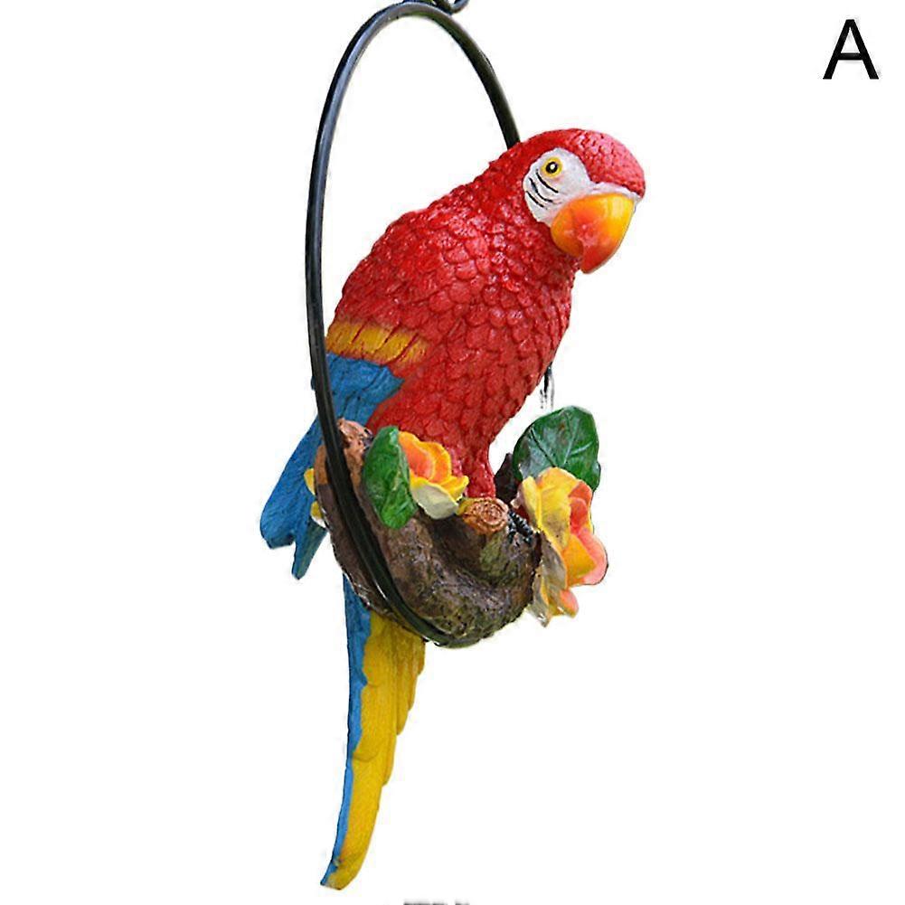 Style: As shown in the picture Size: Parrot: 13*7*18.5cm\5.12*2.76*7.28inch Iron ring: diameter 15cm\5.91inch, height: 20cm\7.87inch; Features: The parrot has bright, vivid colors, fine details, and lifelike appearance. This realism adds a charming and whimsical touch to your garden, patio, or home. Made of high-quality resin, this parrot statue is weather-resistant and perfect for indoor and outdoor use. This decorative parrot is suitable for a variety of environments. Use it to decorate your backyard, patio, balcony, or even home as a quirky, eye-catching decoration. Its playful nature and bright colors make it an ideal decoration for the garden, living room, or entryway. Perfect Garden Gift: This parrot garden statue is the perfect gift for garden lovers, bird lovers, or anyone who appreciates unique and interesting outdoor decorations. Product includes: 1* Courtyard tree pendant Note: Please allow slight size errors (1~2cm/0.39~0.78inch) due to manual measurement, which shall prevail in actual receipt; Please allow slight color errors under different monitors.
