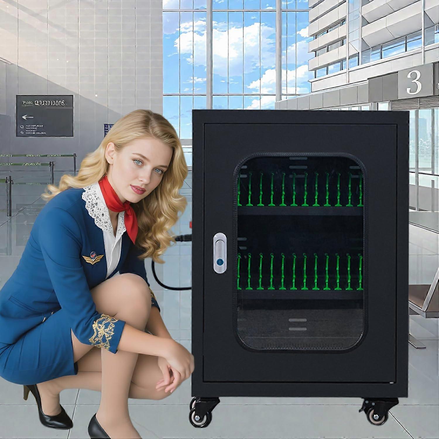 30 Device Cell Phone Charging Cabinet with Wheels, Lockable Mobile Storage Cart for Classroom