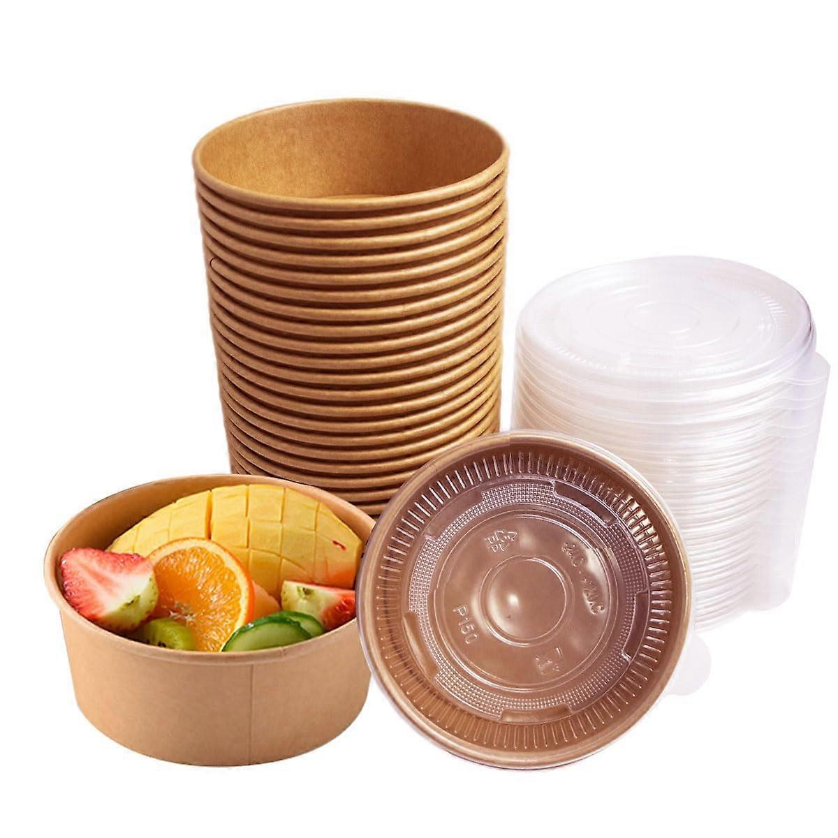 15 Pack 26oz Paper Bowls with Lids, Brown Food Containers for Hot and Cold, Party Picnic Ready