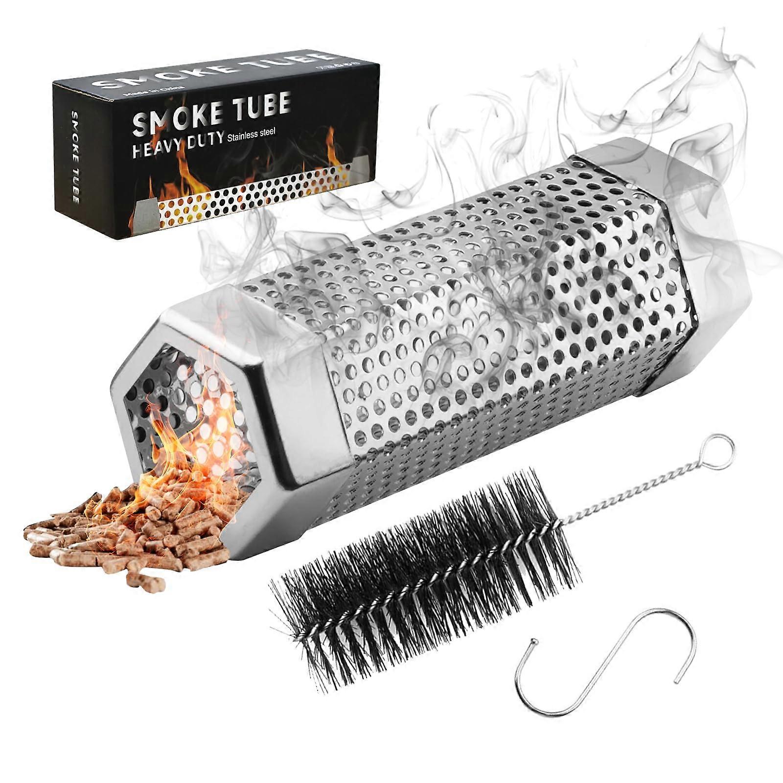 Smoker Tube 6 Inch Stainless Steel Pellet Tube for Cold Smoke BBQ Grill with Cleaning Brush