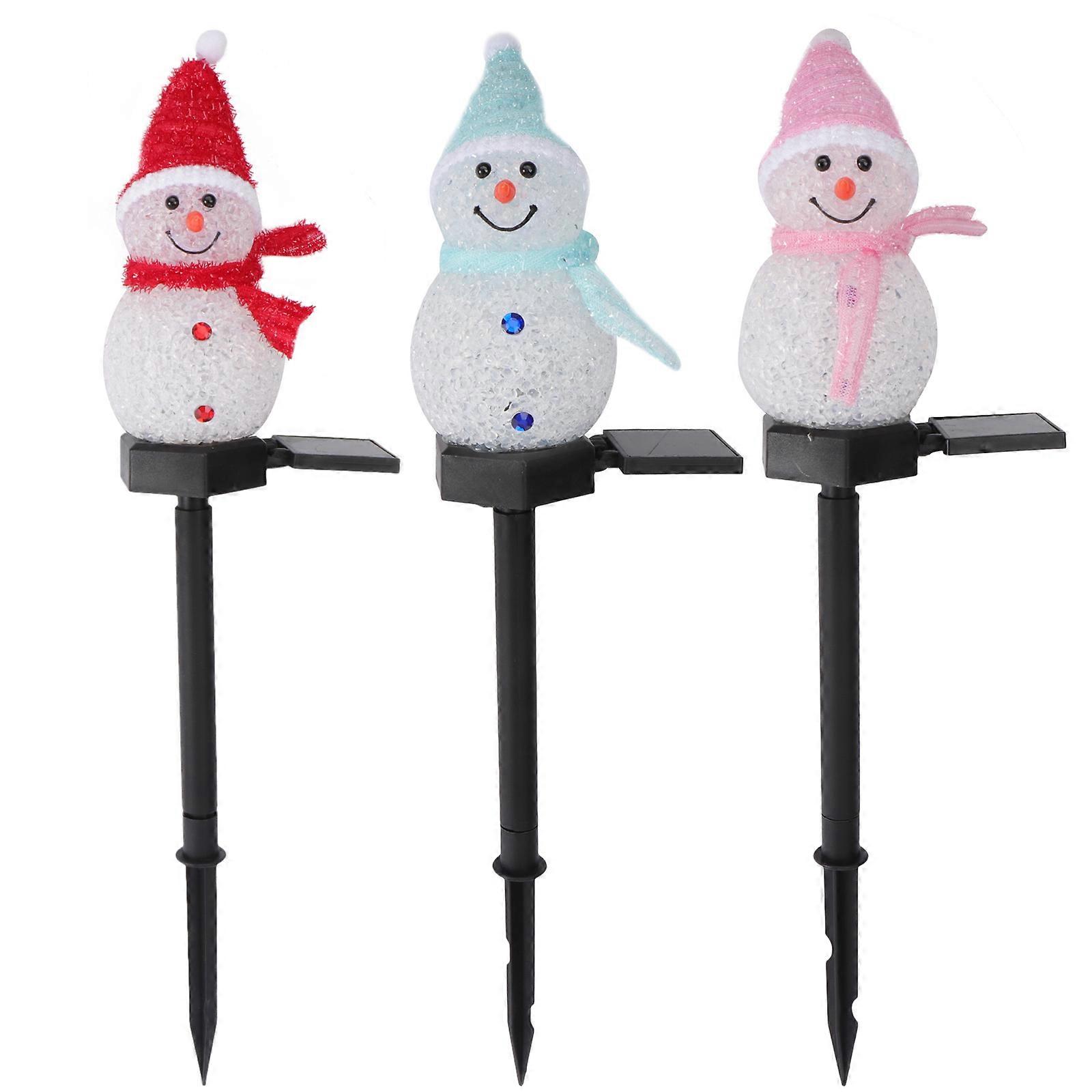 Solar Energy Lamp Snowman Shape Ground Inserted Lamp for Outdoor Use 3Pcs