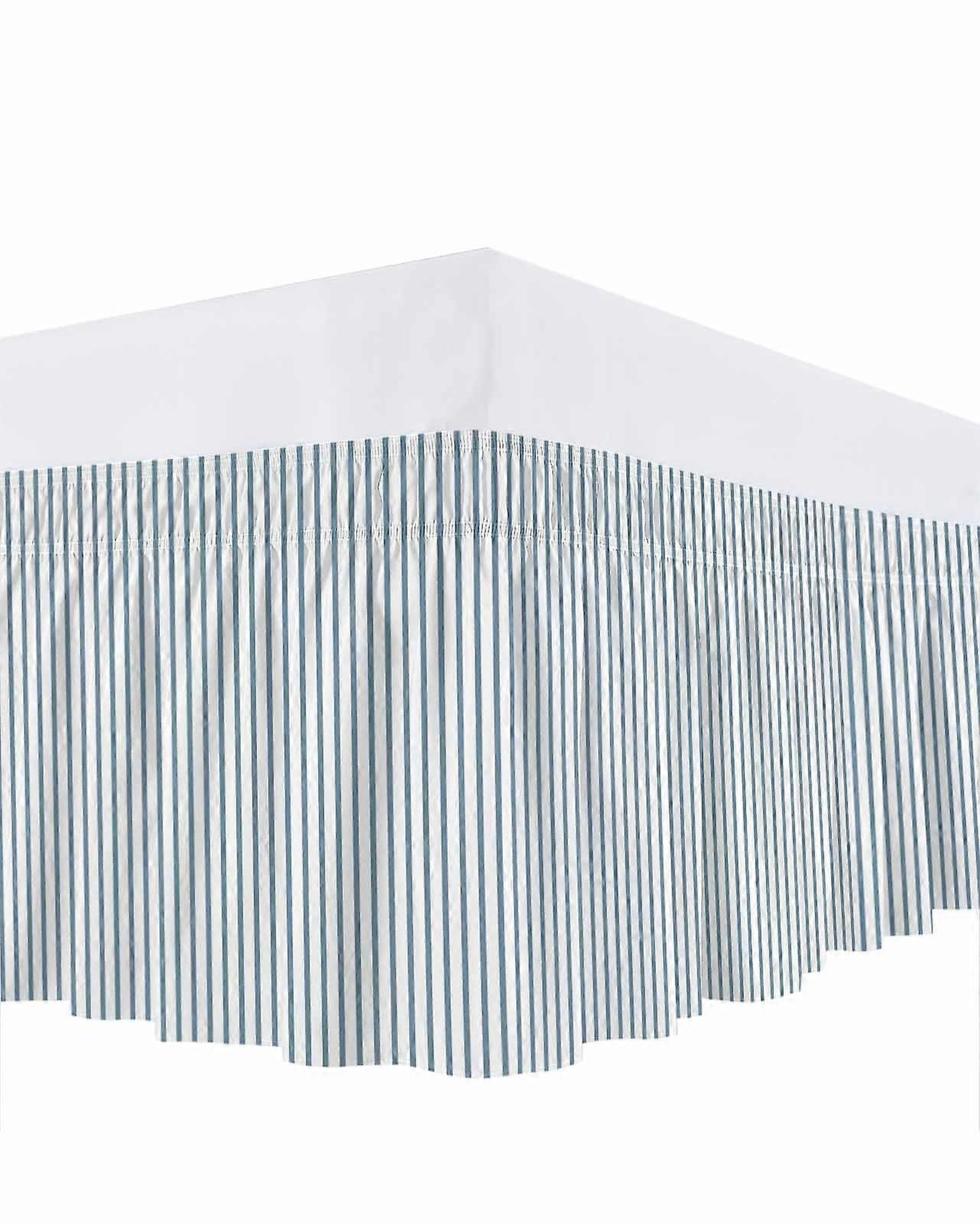 Blue & White Stripe Bed Skirt Queen, 18" Drop, Wrinkle/Fade Resistant, Adjustable Elastic, Easy Fit