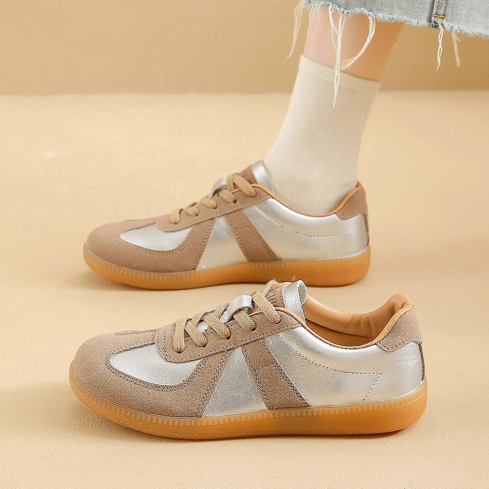 Suede Lace Up Flat Casual Shoes Comfortable Loafers For Everyday Wear Slip On Walking Footwear Silver 40
