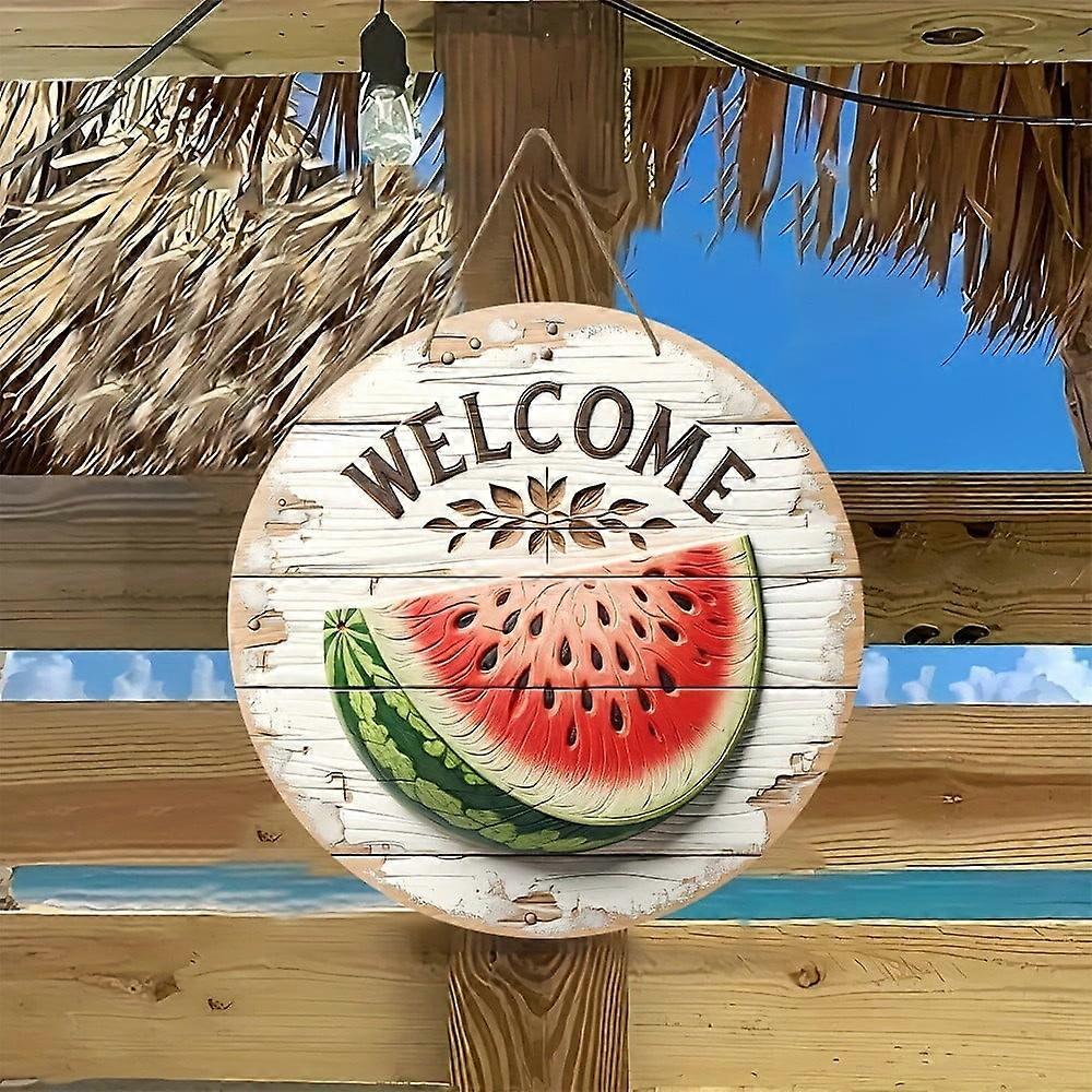 Summer Watermelon Wooden Hanging Sign, Round Poplar Wood Door Plaque for Home Decor, 20x20cm Wall Art for Bar Cafe Garden