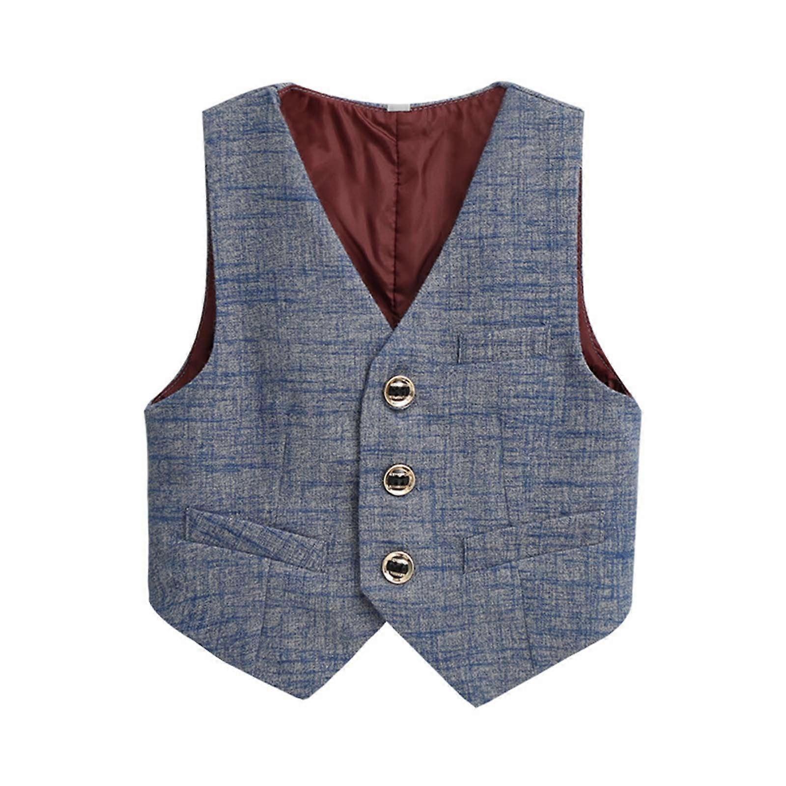 Boys Suit Vest Toddler Kids 3 Buttons V-Neck Formal Waistcoat Vest With Pockets For Wedding Piano Performance Trendy Vests