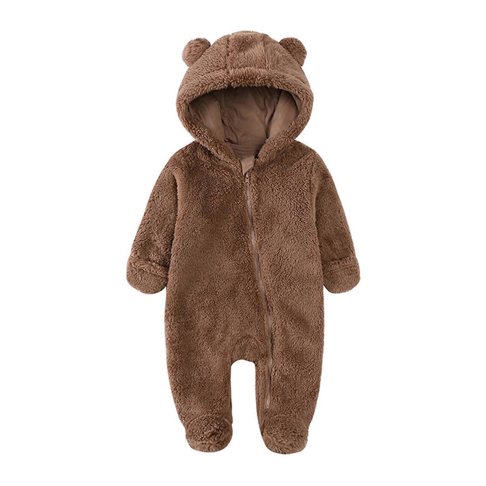 Baby Boys Girls Snowsuit Solid Color Warm Hooded Footed Romper Fold-Over Mittens Jumpsuit Outfits Fluffy Winter Coat Stylish One-Pieces