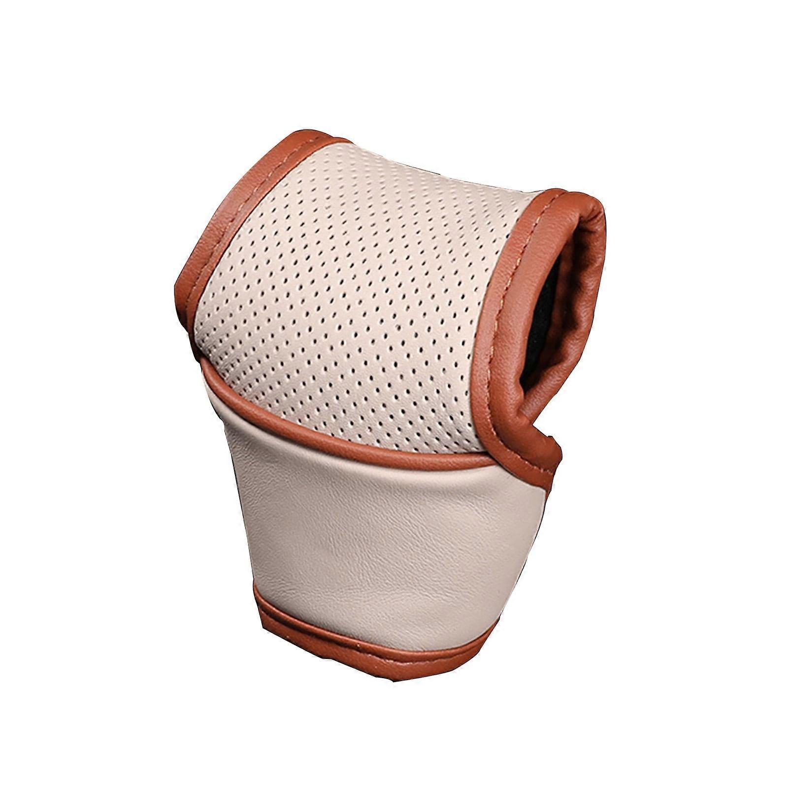Car Gear Shift Knob Cover, Universal Velcro Protector for SUV/Truck/RV – Beige/Brown Edge, Compatible with Manual Stick Shift