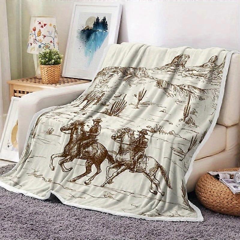 JAWO Vintage Western Cowboy Throw Blanket, Rustic Southwestern Fleece Flannel, 60x90", 280gsm, for Bed/Couch/Living Room – Compatible with Wild West