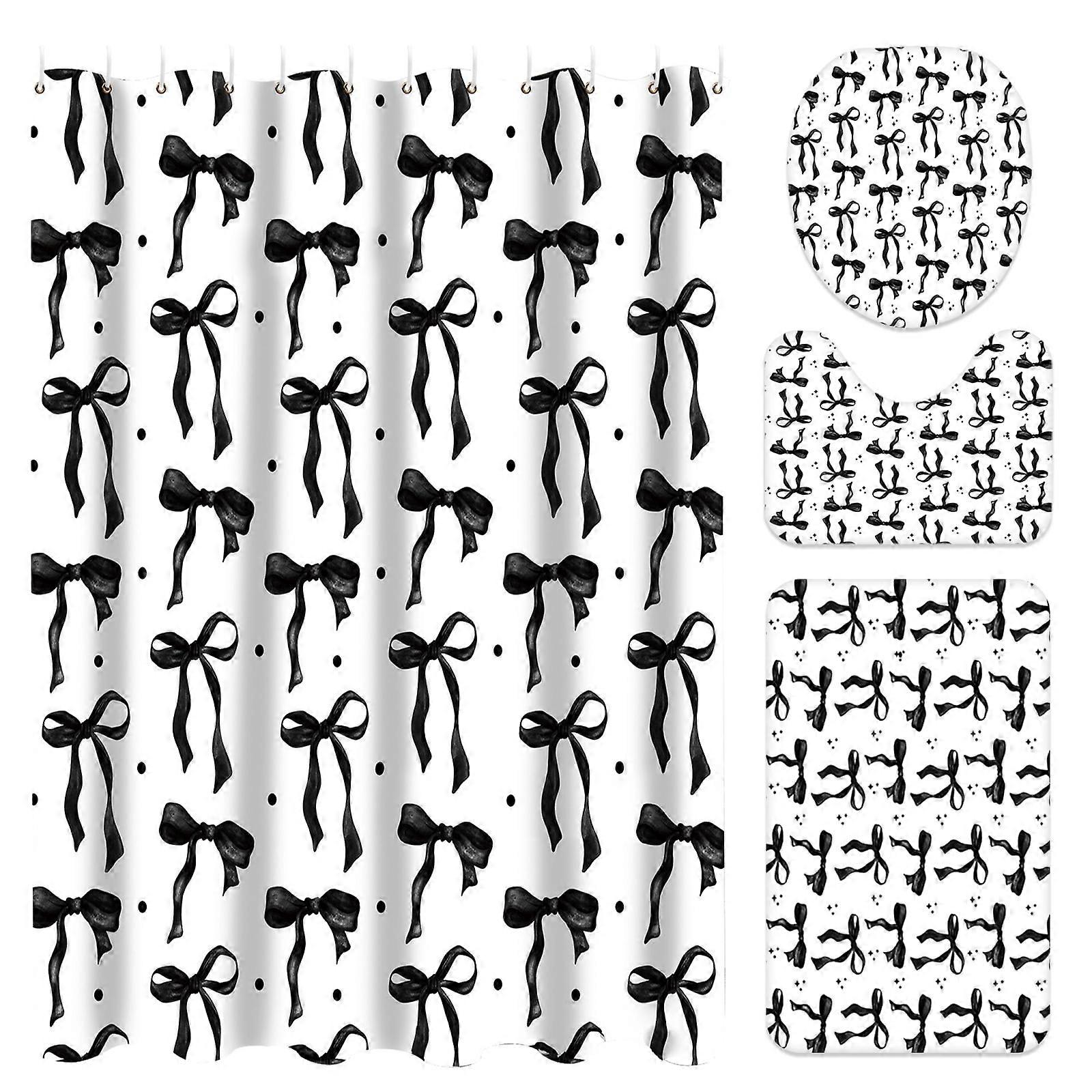 4 Pcs Shower Curtain Set Cute Bathroom Shower Curtain Set Multifunctional Bathroom Kit for Hotel Apartment Dormitory Camper RV