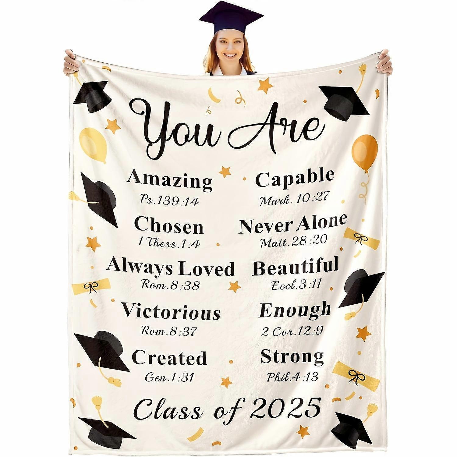 1pc Graduate Patterned Flannel Blanket – Soft, Warm, All-Season Home Decor for Sofa, Bed & Living Room