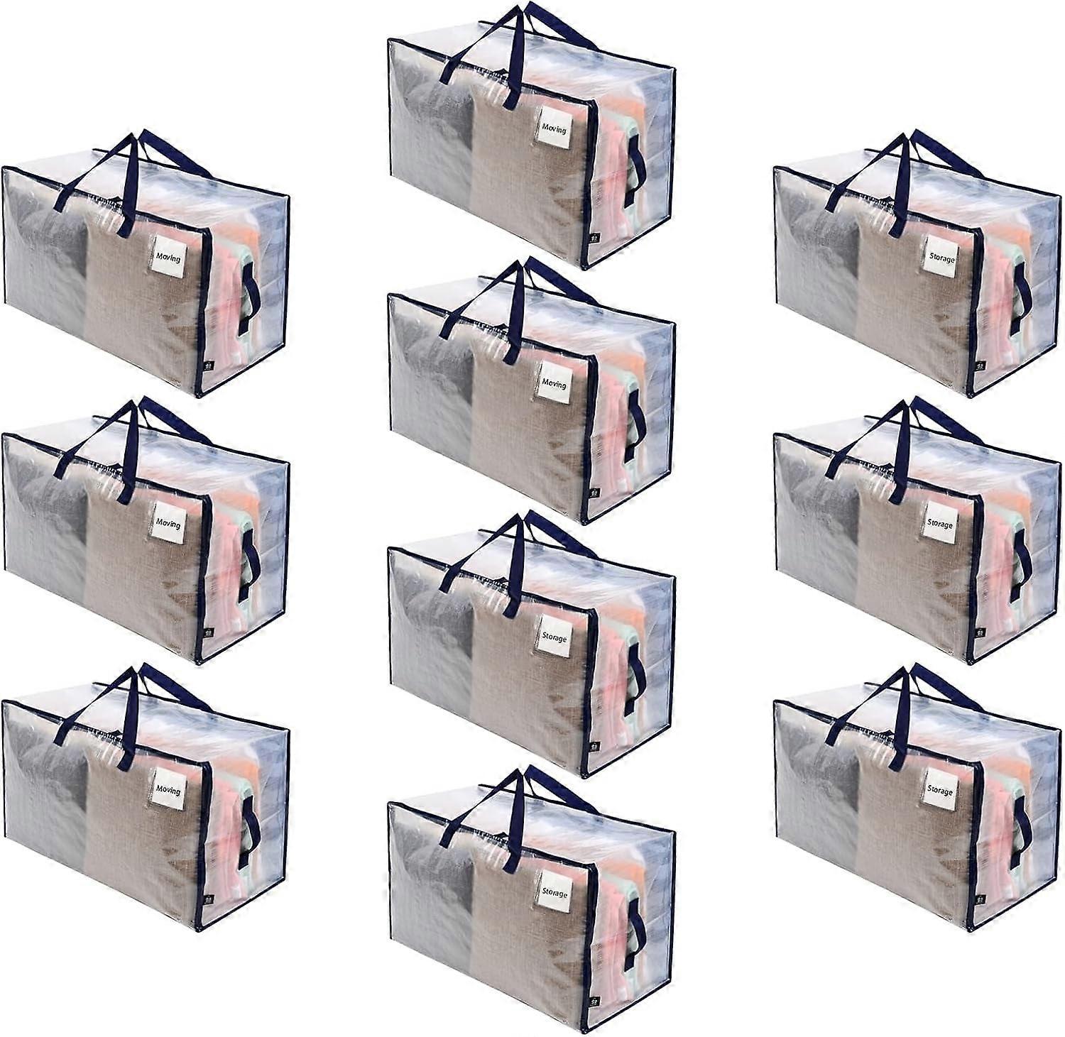 XiHAMA 10-Pack Heavy-Duty Moving & Storage Bags – Zipper, Wide-Open Design, Dorm/College Clothes Totes, Compatible with Standard Moving Needs