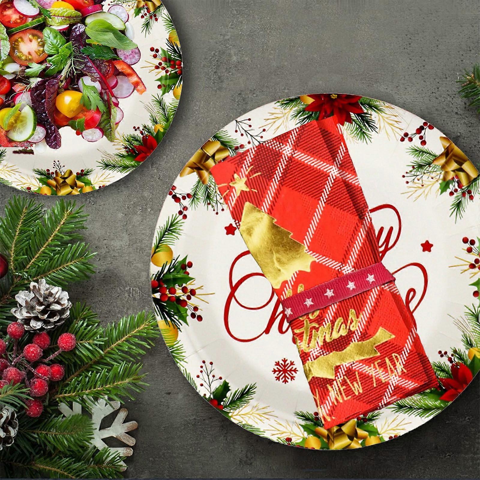 Christmas Oval Paper Plates Large 7 Inch Disposable Dinner Plates Heavy Duty for Party Supplies Holiday Decorations Restaurant