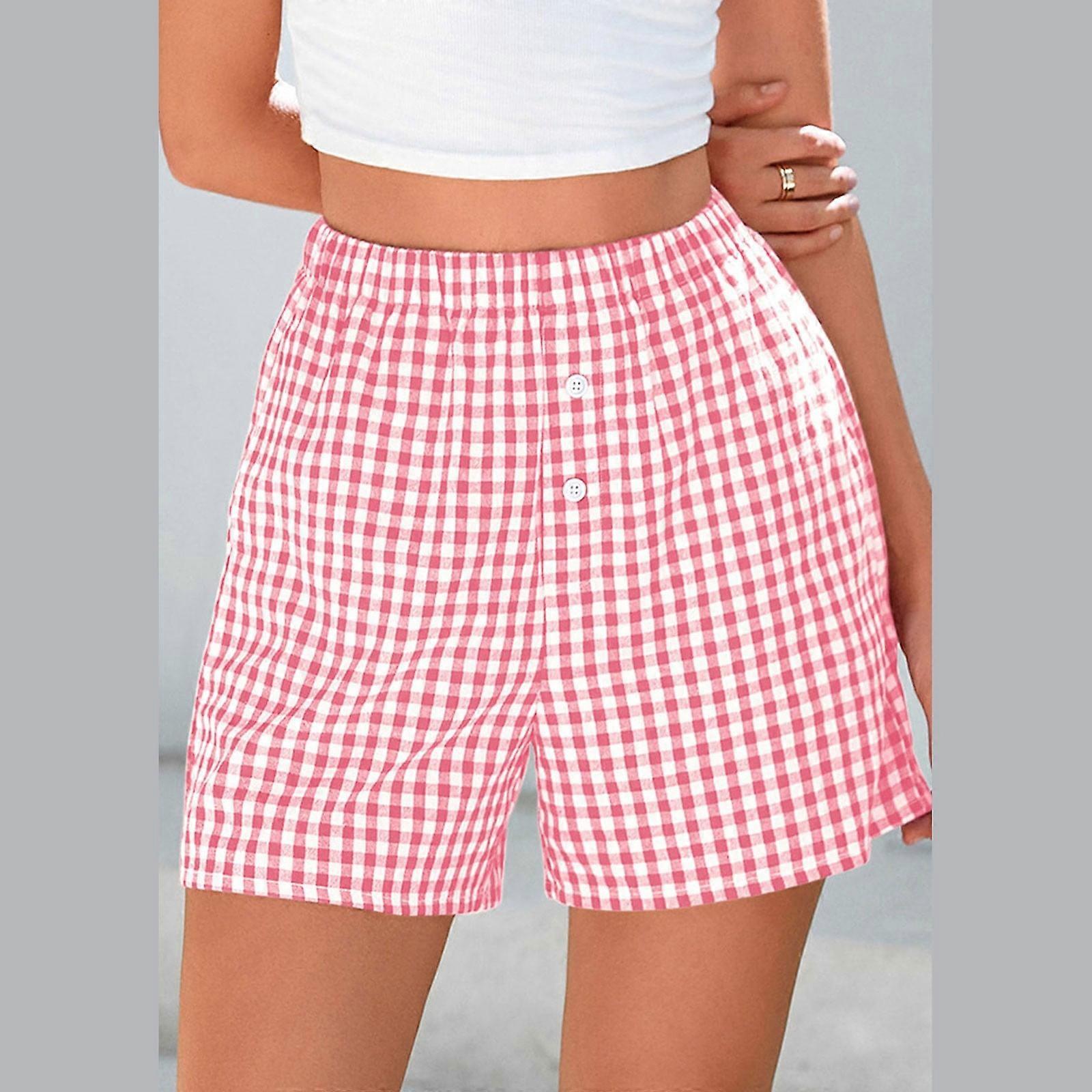 Women's Cute Plaid Cotton Running Shorts, Soft Elastic Waist, Sleepwear & Lounge Pants – Pink XL, Compatible with Daily Wear
