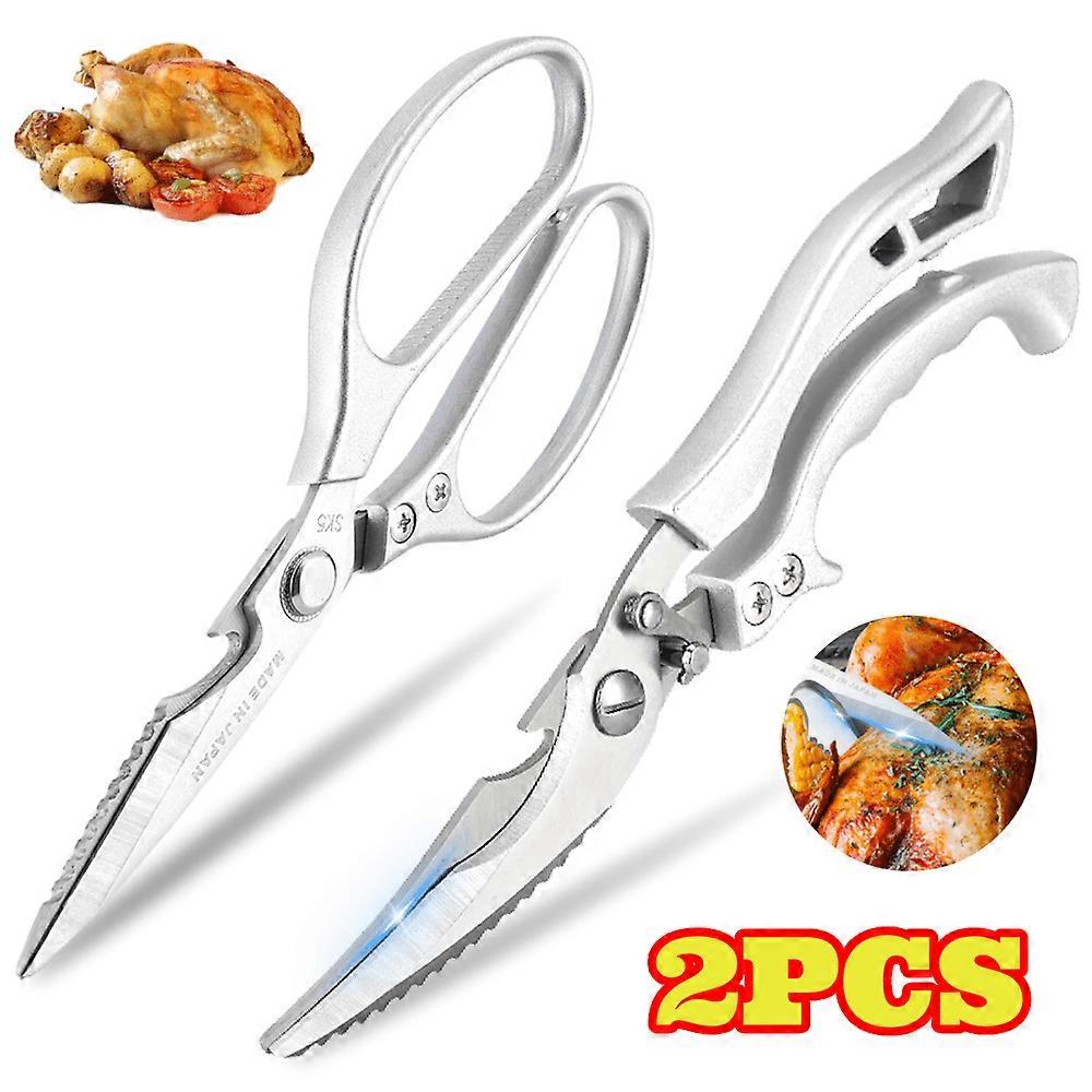 2pcs Stainless Steel Kitchen Scissors, Heavy Duty Poultry Shears, All Purpose Kitchen Shears with Anti-Slip Handle & Safety Lock for Meat, Bone