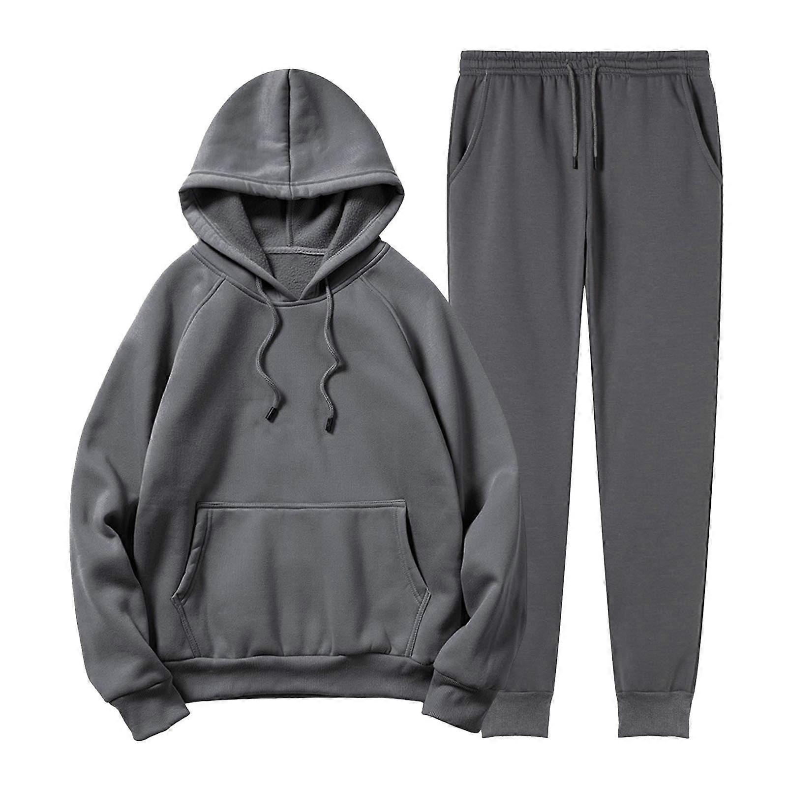 Men's Tracksuit 2 Piece Sweatsuit Solid Color Long Sleeve Pullover Athletic Hoodies Casual Sport Jogging Suits With Pockets