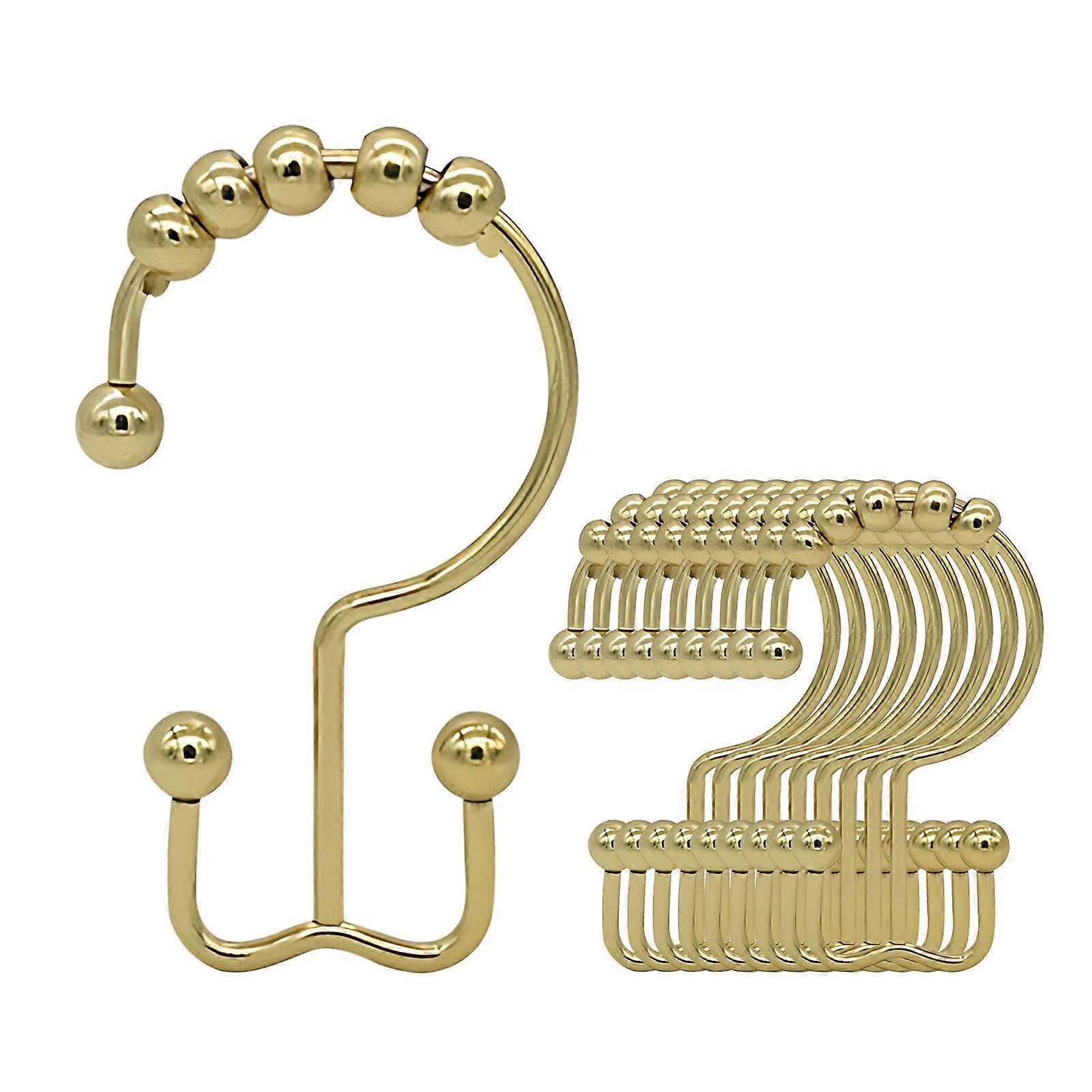 10pcs Gold Shower Curtain Hooks – Rust-Proof, Double Glide, Compatible with Most Curtains & Liners