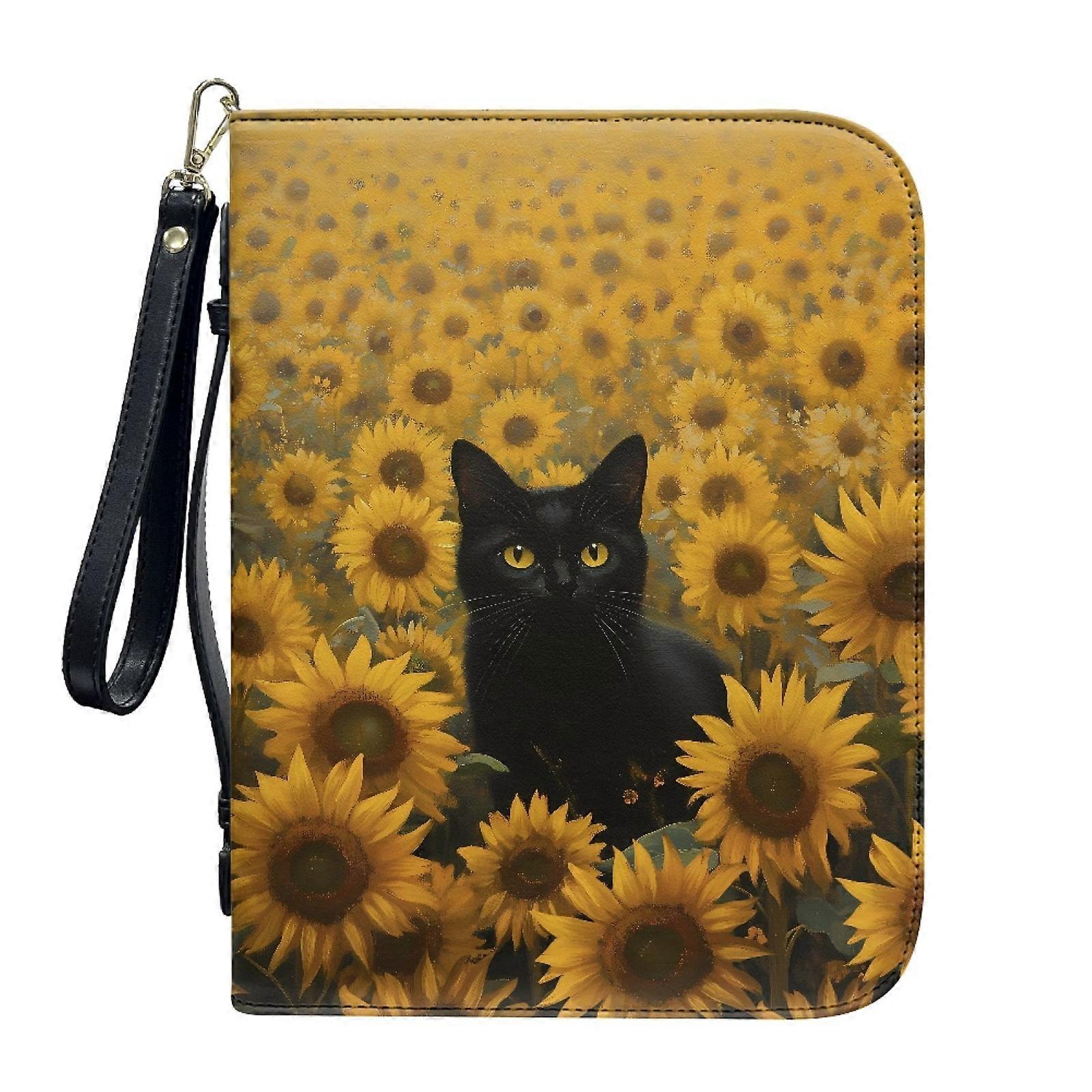 Mandala Black Cat Moon Leather Bible Cover for Women & Men – XL Multifunctional Carrying Case with Detachable Wristlet Strap, Compatible with