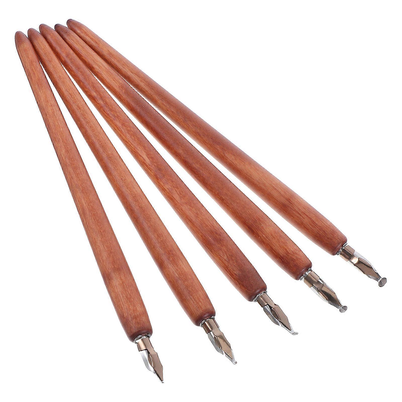 Brown Wooden Steel Nib Dip Pen Set for Writing with 5Pcs Artistic Calligraphy