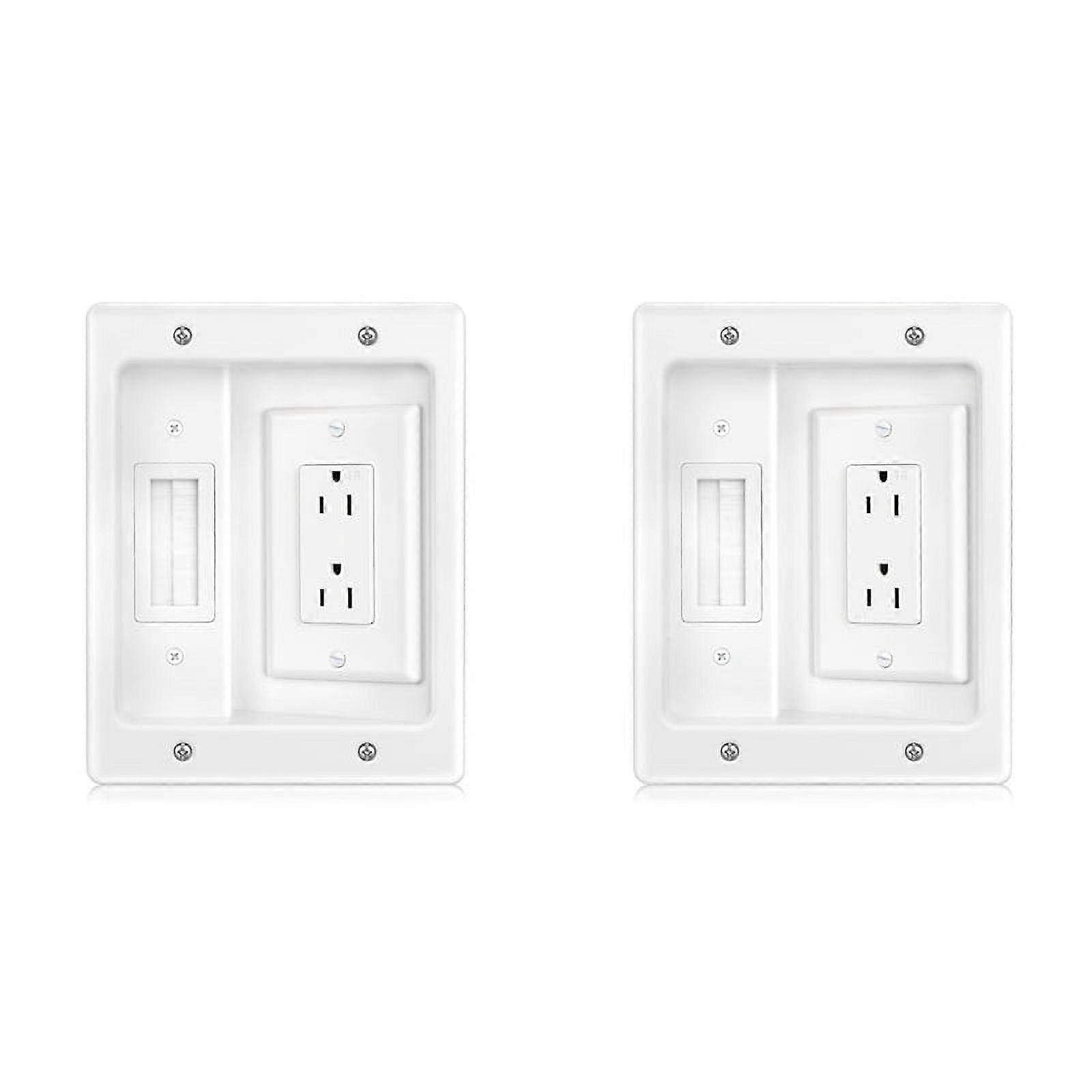 2X Recessed Outlet Box in Wall Cable Management Kit 15A 125V Hide TV Power Cables & Low Voltage Wires Behind the