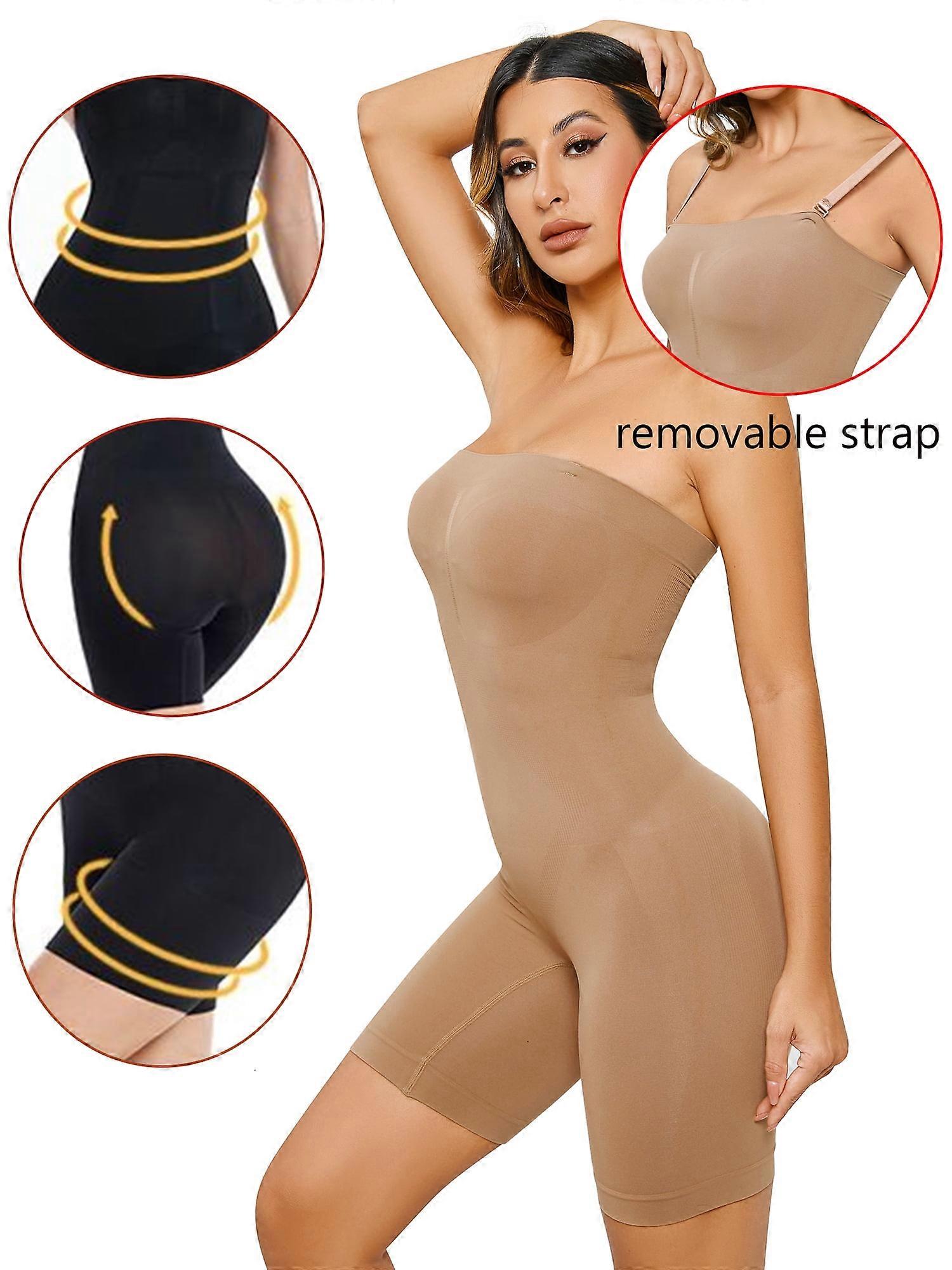 Natural butt lift No compression bra Breathable push-ups Removable shoulder strap Seamless & No rolling up Description: SLIM YOUR TUMMY & SHOW OFF YOUR CURVES: This Shapewear bodysuit Moderate compression pressure will tighten your flabby fat down to help you have a slimmer look while enhancing your natural curve. Smooth belly bulges and shrinks waistline, make your body no lumps or bumps or bulks. It has no steel bones or wires, good to wear every day in all seasons. INSTANT BODY SHAPING: This body shaper is great for shaping your body. It can reduce your tummy and waistline, lift your butt, support your back, pushes your breast up, to achieve instant beauty. Whatever the activity, you will look more attractive in this shapewear! The anti-skid double Adjustable & Removable shoulder straps prevent slipping, rolling, and bunching. Mid-thigh length ensures no curling, comfortable to wear all day. BUTT LIFTER & CHARMING: Shapewear bodysuit-High waist design reduces waistline creating a slimmer feminine silhouette. It’s designed to give you a smoother curve to help you look great in dresses! Hip mesh design gives a nice natural enhancement to your booty, makes your butts look round fuller, bigger and sexier. With the shapewear for women's tummy control, you can be flawless sitting/ standing during work/ walking on the street! BEST GIFT FOR WOMEN: The body-shaping bodysuit is invisible. beneath your daily clothes because of its seamless surface, lightweight and perfect length. Shapewear bodysuits for women make sure they can fit all types of body shapes/figures, long torso/ short torso fit perfectly. You can wear it anywhere with any outer clothing, such as shorts, low-cut blouses, and skirts. It fits Office, Daily Wear, Sleep, Parties, etc. Note: 1.Please refer to our size chart and choose the right size before purchasing. (If your size is between two sizes, please choose the larger size. ) 2.As you know, different computers display different colors, and the actual product color may be slightly different from the picture. 3.Please allow the difference of 1-3cm for manual measurement, thank you (all in centimeters, please note 1cm = 0.39 inch). Ultra firm tummy control Designed to help lift and define the rear 360 solid control to create a sexy hourglass shape Provides great lifting and rounding for the hip and booty areas The Silicone Buttock,be designed to hold them in place without moving,or shifting.
