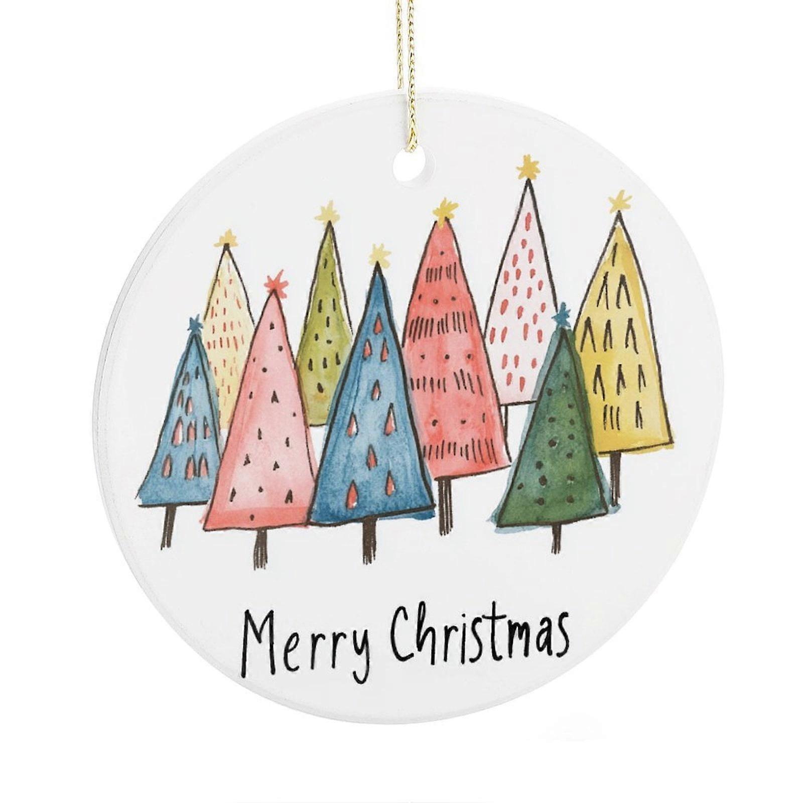 Cute Watercolor Modern Boho Christmas Tree Christmas Tree Ornament Seasonal Winter Holiday 2 Side Printed Ornaments Christmas Decorations Ceramic Ornaments The funny christmas ornaments is specially designed; it will be the great Christmas Gift Perfect for giving a funny expression to friends who will not have a good life in 2023 These ornaments are beautifully painted with intricate designs that capture the spirit of Christmas. The timeless ceramic material ensures they will be cherished for years to come. Decorate Christmas tree with your family. Kids will be happy with this ornament, a great fun holiday activity. With this double side printed Christmas ornament, so that no matter which way the Christmas ornament is facing, you will see the design and the inscription. Give the gift of warmth. These ornaments make an ideal present for your loved ones, friends, family, or colleagues. Porcelain Material: High quality of Ceramic surface,nvironmentally friendly ceramic. Size: 3 inches in diameter.Comes with 1-Round ceramic ornament and 1*Golden String. Double-sided printed:Using premium print is long-lasting and creates colorful, vibrant, bright designs from creative artwork. Christmas Tree Decorations: Liven up your Christmas spirit with this Colorful Christmas Trees Snowflake stunning Christmas tree decor. It will be a surprise to give this Christmas gift and create unforgettable Christmas decorations for your loved ones! Moreover, this unique ornament also makes cozy tree decor for your house. Perfect Gifts: Cute Rainbow Colored Xmas Tree Christmas Tree Ornaments Excellent for mom, dad, son, daughter, brother, sister, uncle, aunt, grandma, grandpa, friend, spouse, husband, wife, boyfriend, girlfriend, mother, father, in-law, co-worker, or anyone to just wish them well and also give them something to chuckle about these unfortunate times.