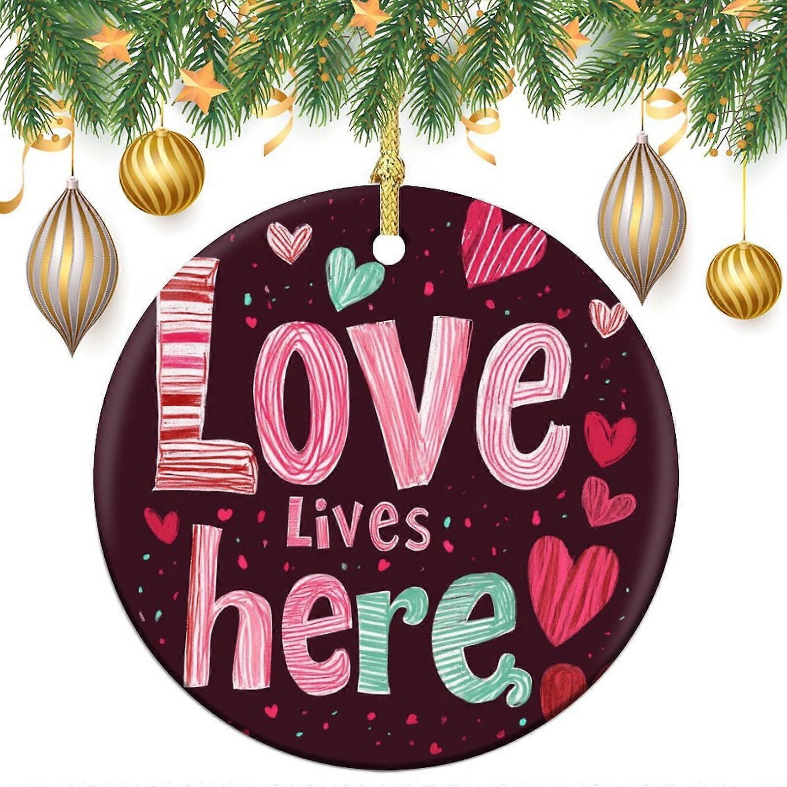Love Lives Here Valentine Ceramics Ornaments Valentines Day Holiday Keepsake Ceramic Ornament Christmas Tree Hanging Accessories Xmas Gift