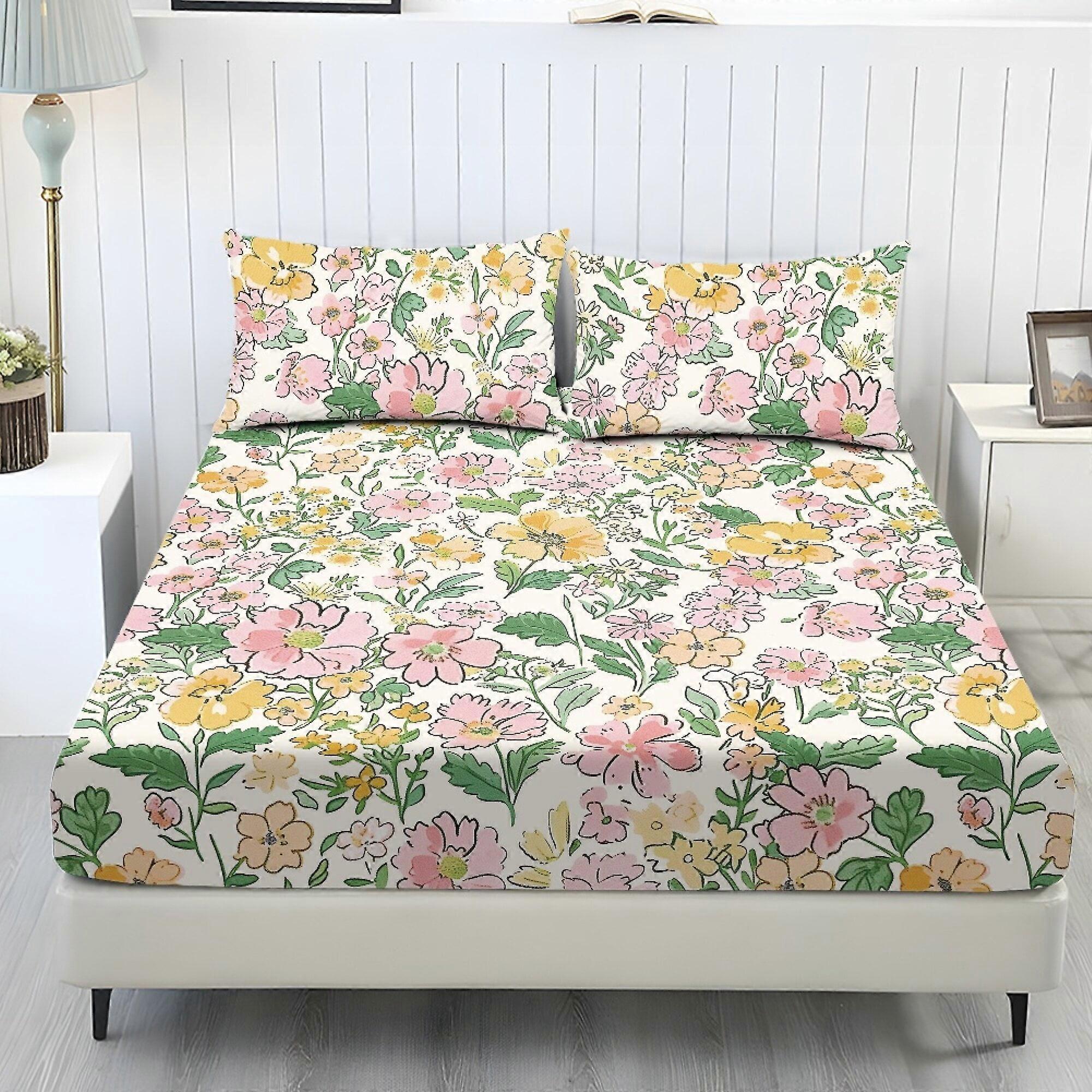 Country Floral Ditsy Twin Sheet Set, 3 PCS Vintage Soft Cooling Bedding, 9.8" Pocket, Easy Care (1 Fitted + 2 Pillowcases)