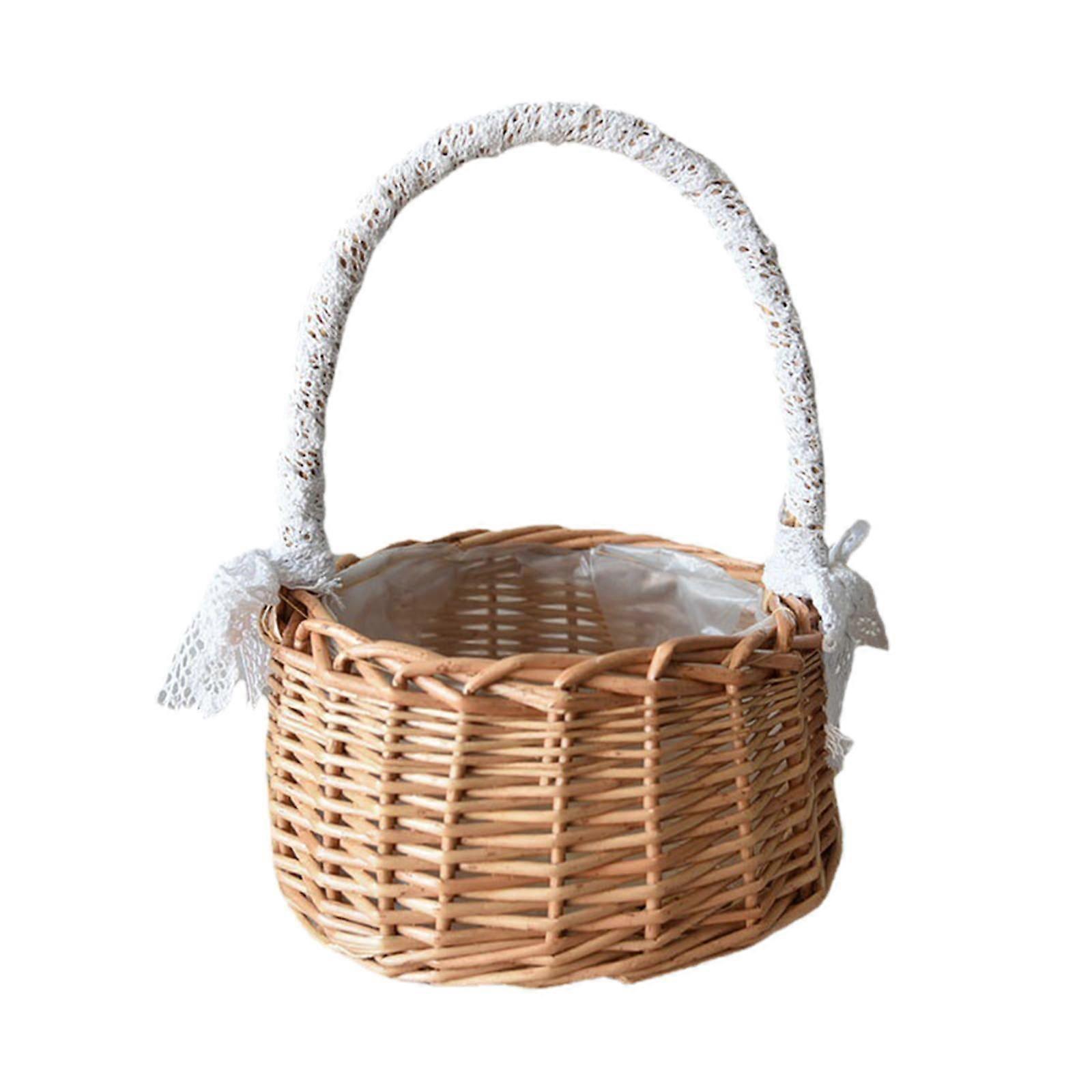 Description: Hand-woven, the rattan is strong and durable after being fumigated. Lace bow decoration, playful and cute, natural fresh style, wicker storage basket. Can hold cosmetics, towels, faux plants, keys, pens, pencils and more, home desktop storage artifact. Equipped with a built- in coating, fine rustic indoor and outdoor planters. Suitable for desktop, dining table, shop, clothing storage. Specification: Material: Rattan. Size Chart: L: Base diameter: 18cm/7.09in, Basket Height(not include handle): 11cm/4.33in, Total Height: 24cm/9.45inch; M: Base diameter: 15cm/5.91in, Basket Height(not include handle): 9cm/3.54in, Total Height: 21cm/8.27in; S: Base diameter: 11cm/4.33in, Basket Height(not include handle): 9cm/3.54in, Total Height: 20cm/7.87in. Package Includes: 1 Piece Storage Basket. Note: Color might be slightly different due to the color calibration of each individual monitor. Please allow slightly measuring deviation due to manual measurement. Easter Basket Wedding Flower Girl Baskets Picnic Basket with Handles Hand Basket Natural Wicker Rattan