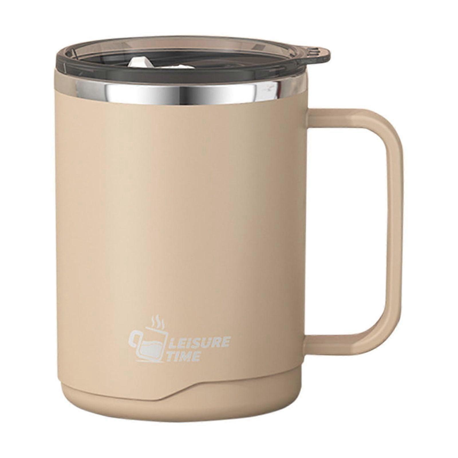 Coffee Mug with Lid 500ML Insulated Sealed Leakproof Office Tea Cup Portable Travel Mug for Coffee, Milk, Hot Cocoa (Khaki)