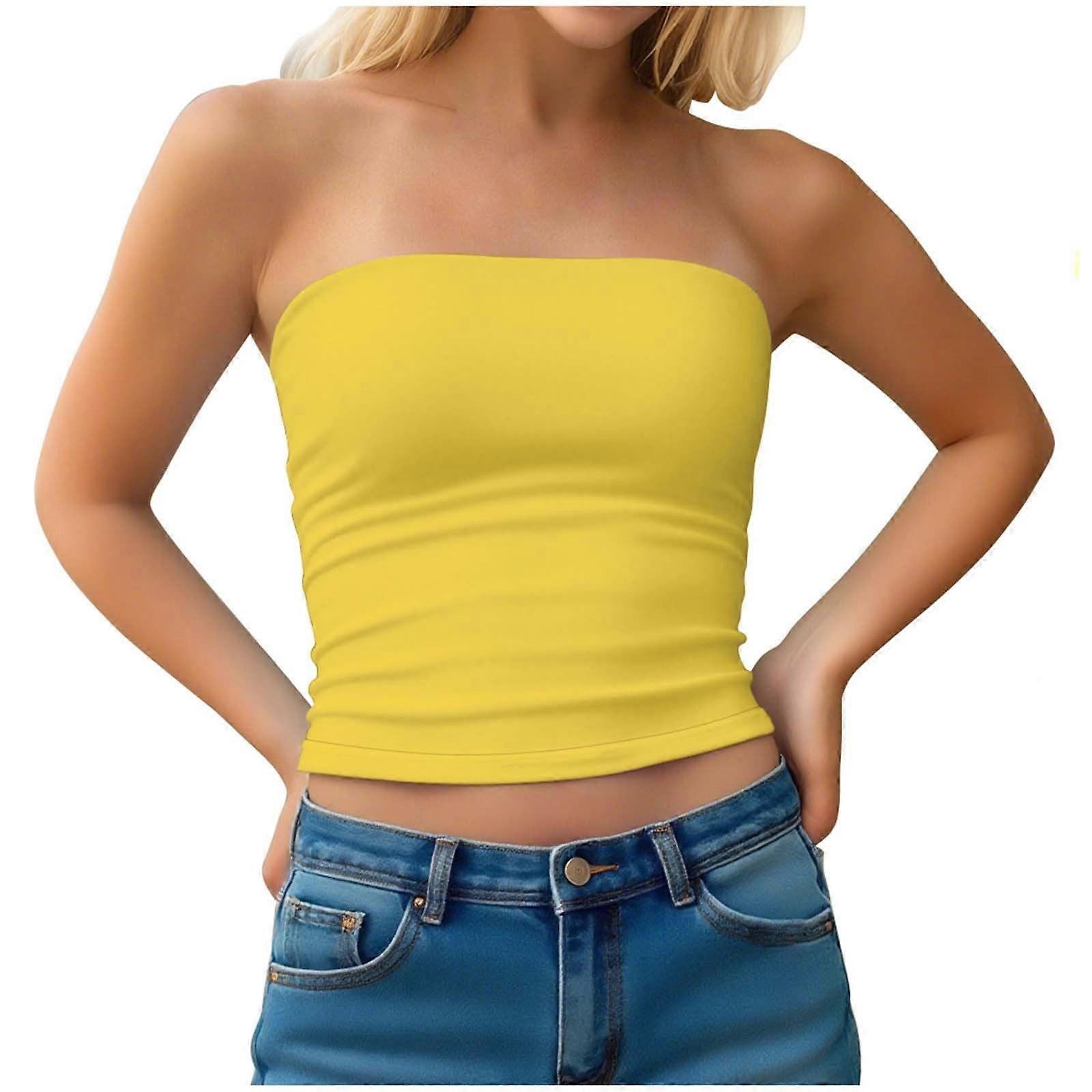 Women's Solid Color Y2K Strapless Tube Top - Double-Layered Sexy Bandeau Crop Top, Slim Fit Going Out Summer Clothes for Women (S-XXL)