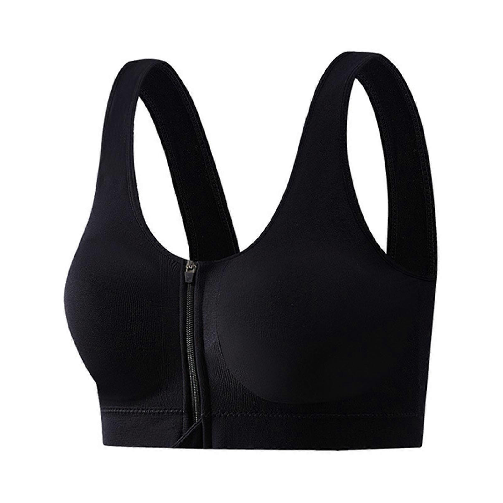 Women's Zip Front Sports Bra Wireless Post-Surgery Bra Padded Support Bra with Removable Cups for Workout Yoga Gym Running