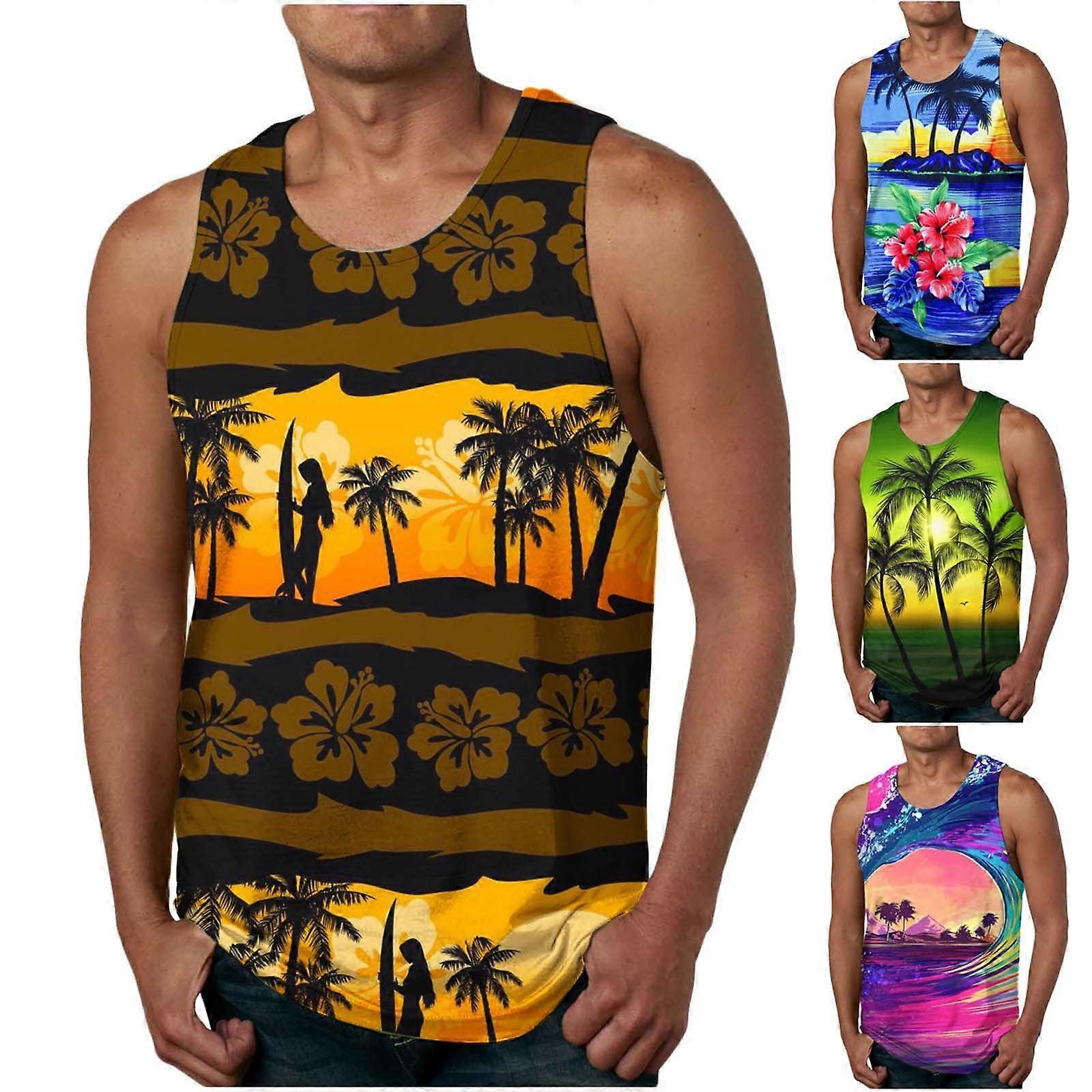 symoid Tank Tops for Men Big and Tall- Beach Hawaiian Summer Casual Green Boys Undershirts Size M