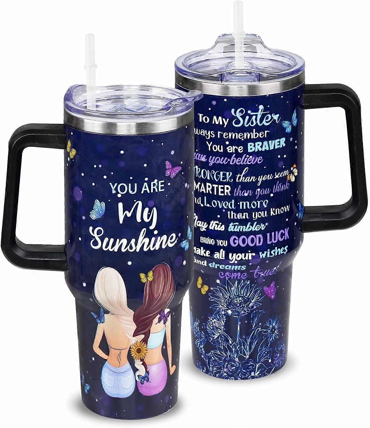 Sister Gifts - 40 oz Stainless Steel Tumbler With Handle & Straw - Gifts for Best Friend & Sis on Mother''s Day, Birthday, Christmas