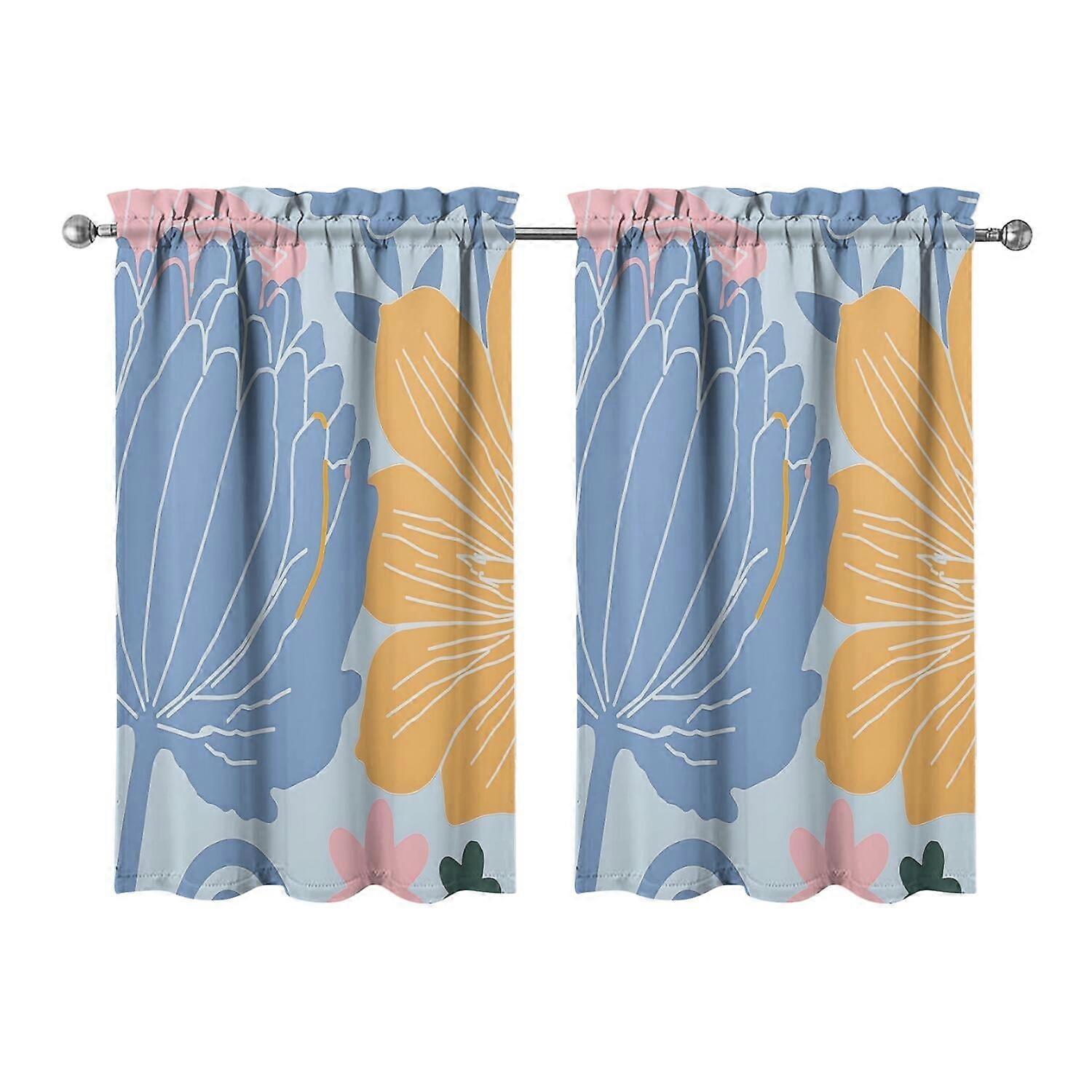 Vintage Blue and Yellow Block Flowers Tier Kitchen Curtains for Bathroom Living Rod Pocket Window Drapes 28"x39" 2 Panels Window Treatment Tiers