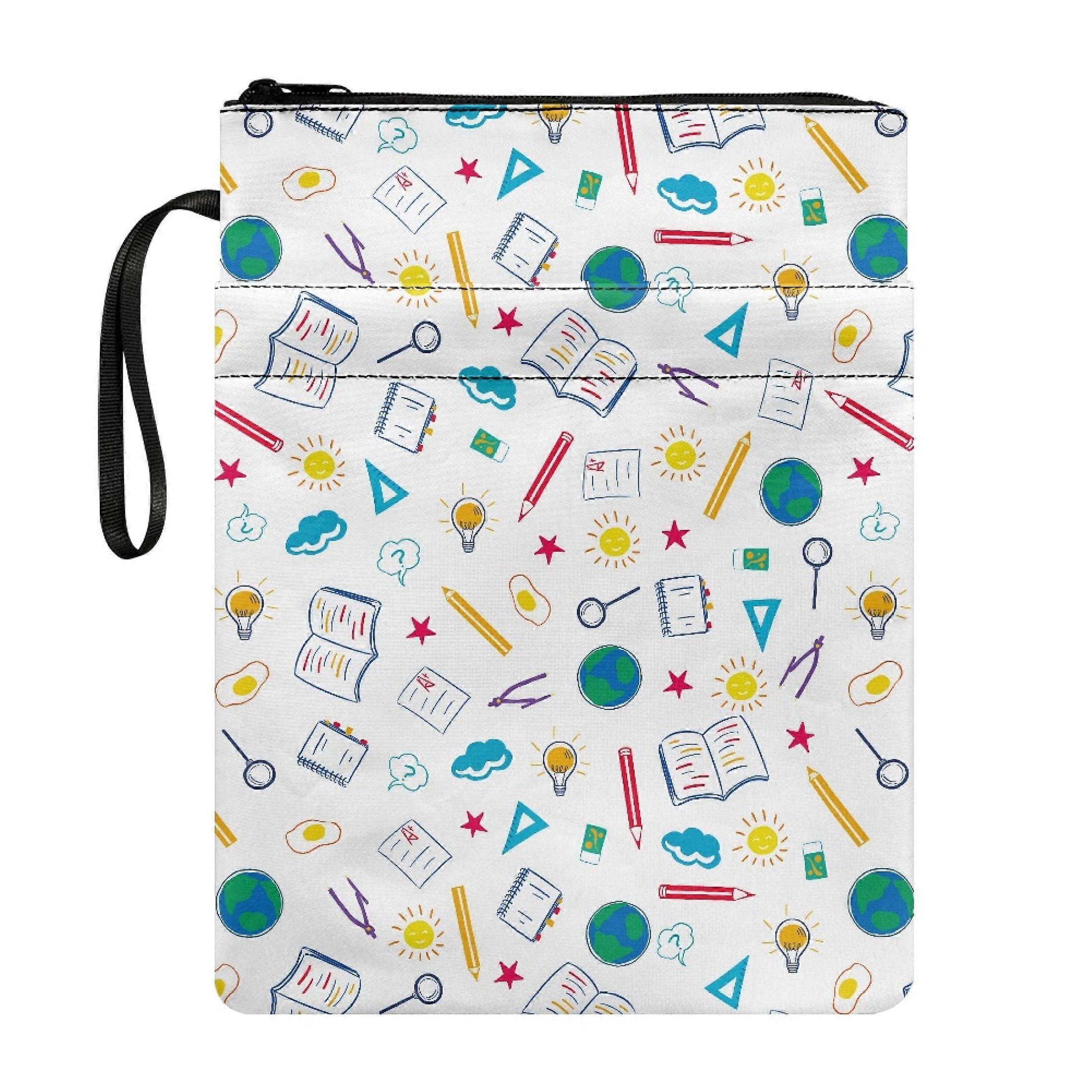 Book Cover Sleeve with Zipper, Waterproof Polyester Bag for 11.42x8.66" Books, School Supplies Pattern – Compatible with Most Notebooks