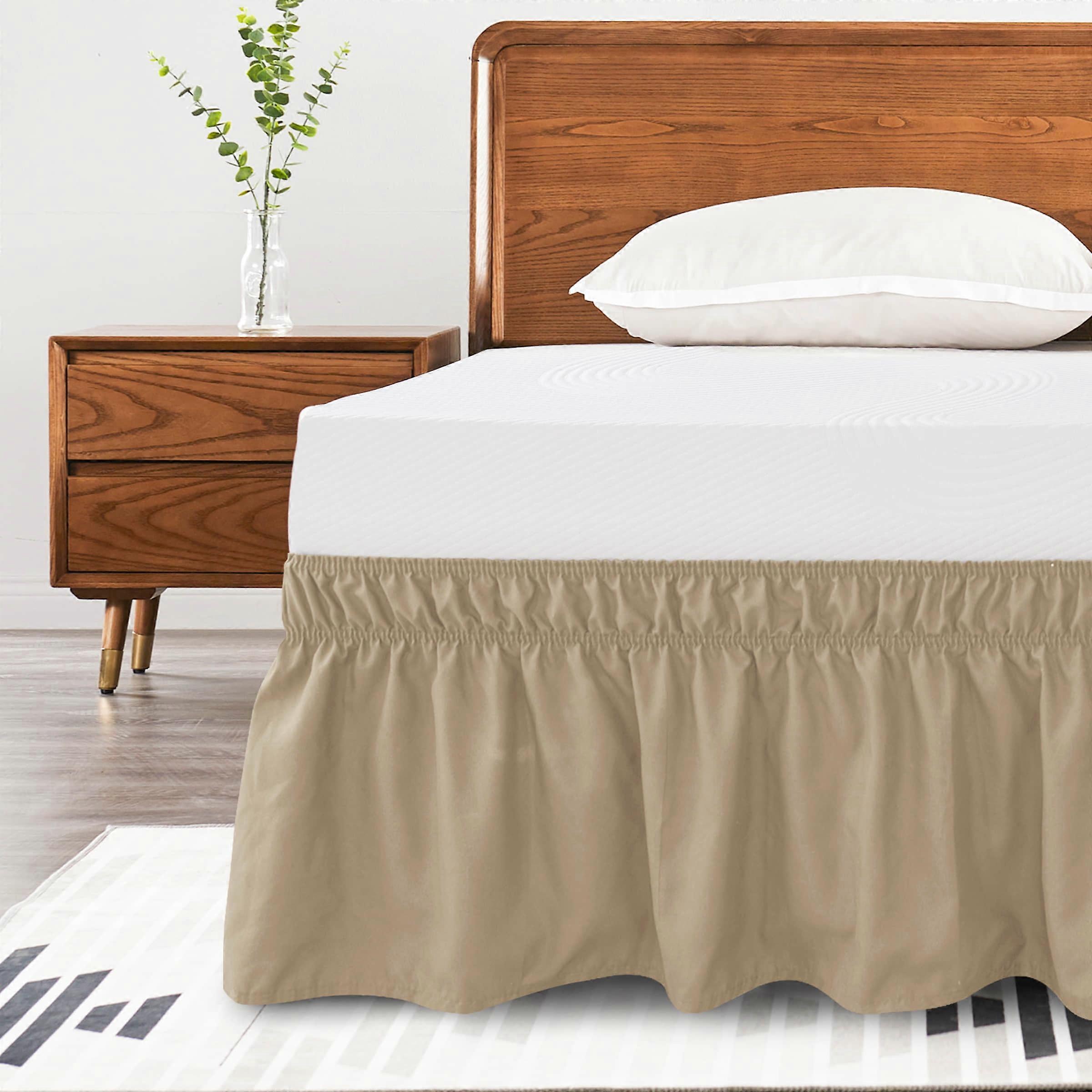 Bed Skirt Wrap-Around Dust Ruffle Elastic 16 Inch Bed Cover, Full, Khaki