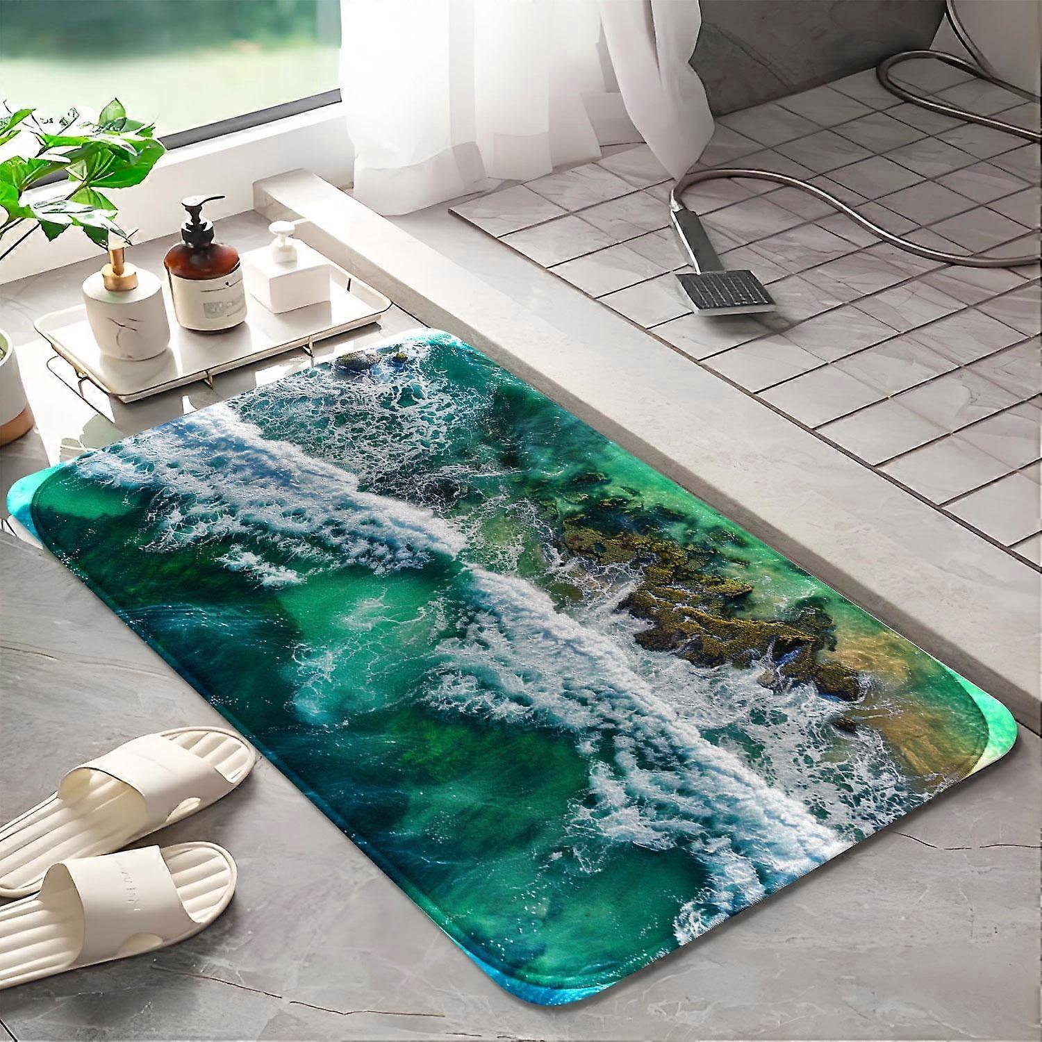 Beach waves 1021 Non-Slip Memory Foam Bath Rug: Absorbent, Quick-Dry, Machine Washable, Soft & Comfortable - L