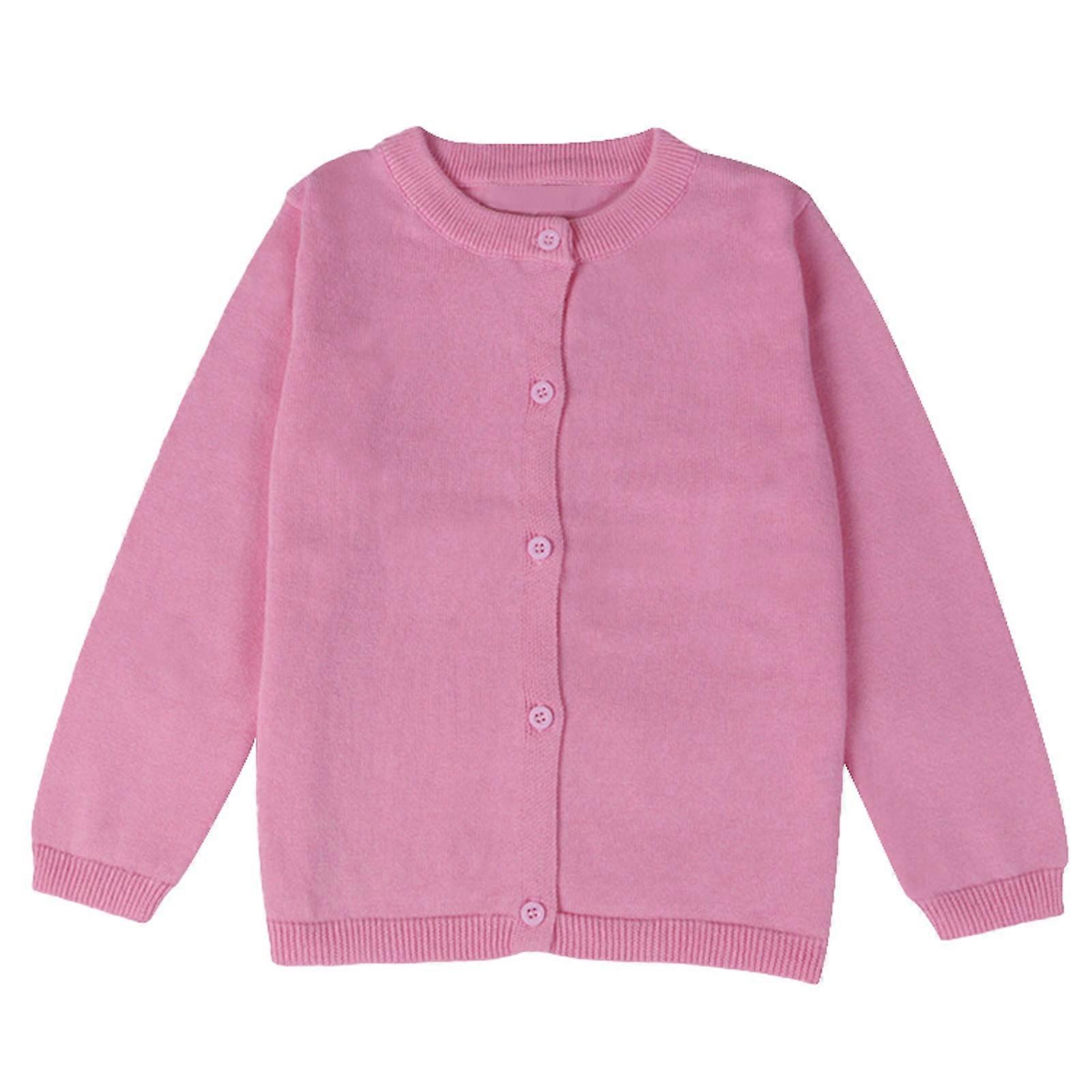 Girls Cardigan Long Sleeve Kid Button Sweater Girl Crew Neck Cardigans Sweater Toddler Sweaters, Pink 3Y