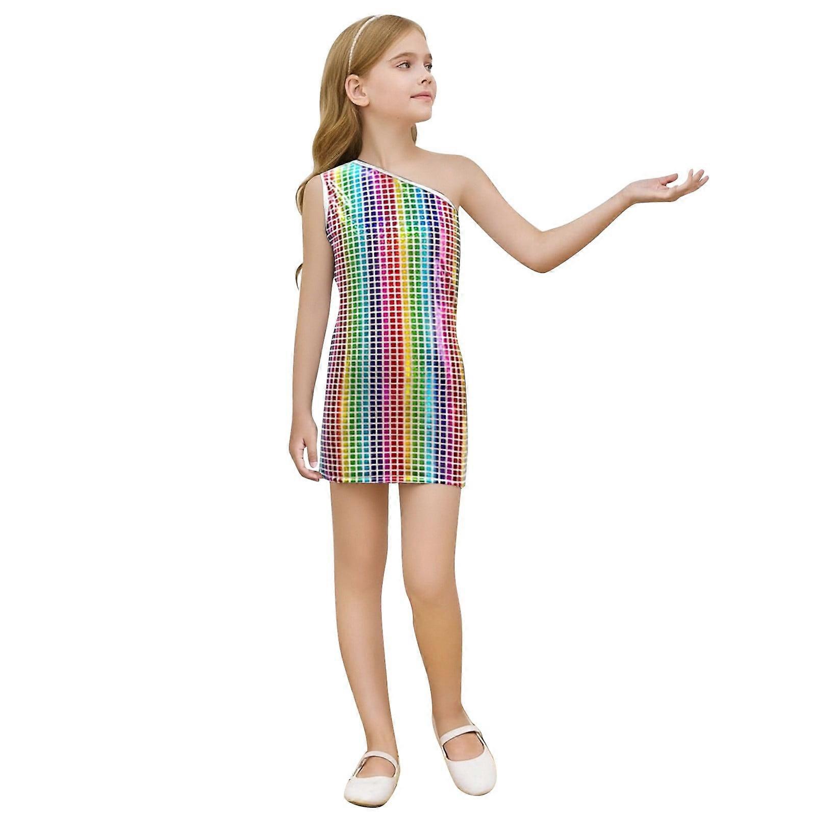 AWZXDE Girls Dresses 2025 Fashion Square Sequin Print Sleeveless Dress Round Neck Asymmetric Hem Party Casual Summer Outfit Multicolour,15-16Years