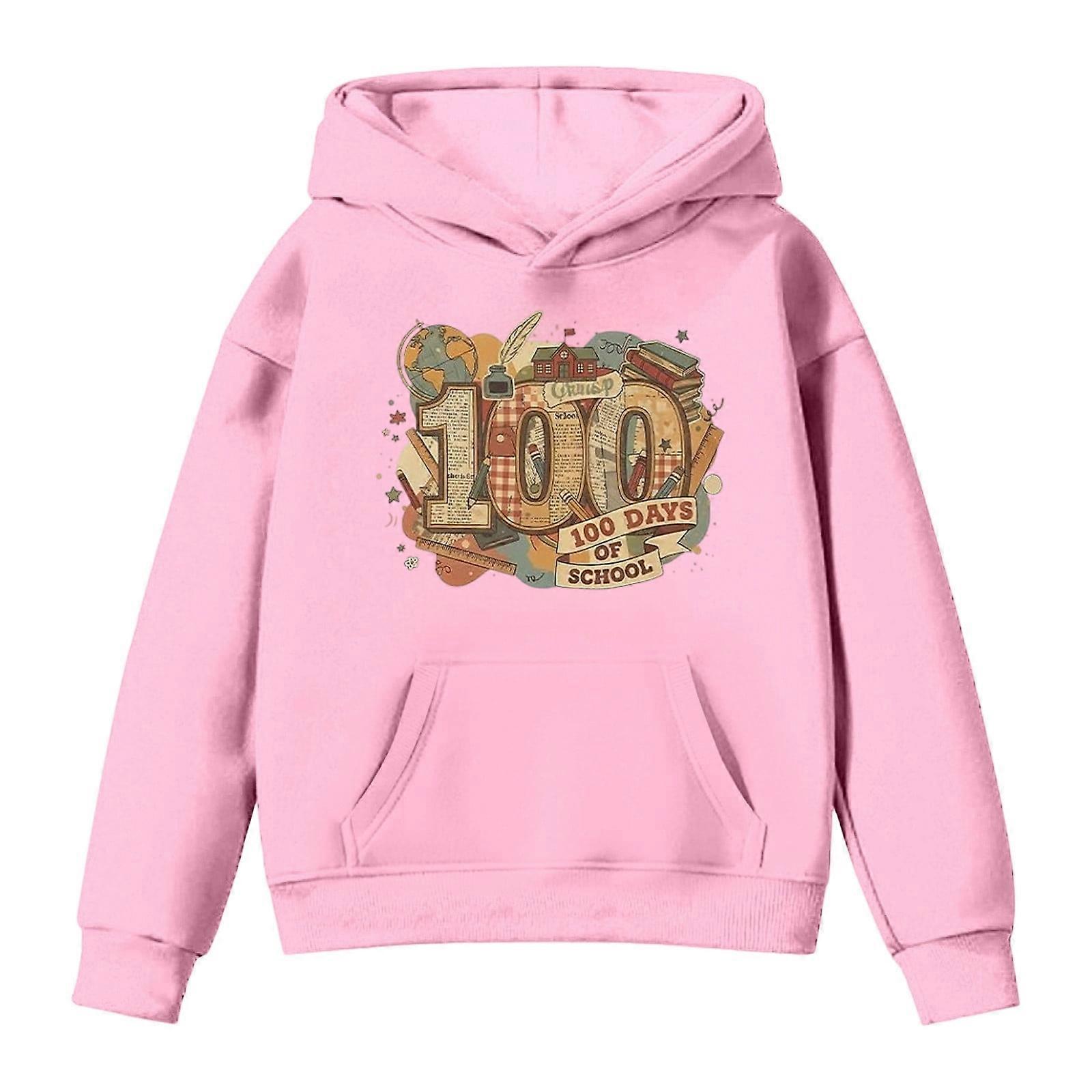 100 Days Of School Kids 100Th Day Of School Hoodie Boys Girls Letter Printed Long Sleeve Sweatshirt 2-13 Years Comfortable Tops