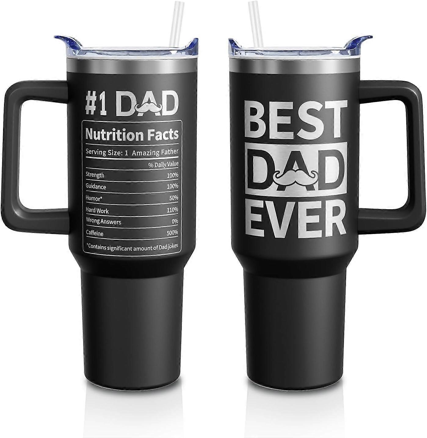 Father’s Day Gift for Dad: 40oz Stainless Steel Tumbler with Handle, Lid & Straw – “Best Dad Ever” Laser Engraved (1 PC)